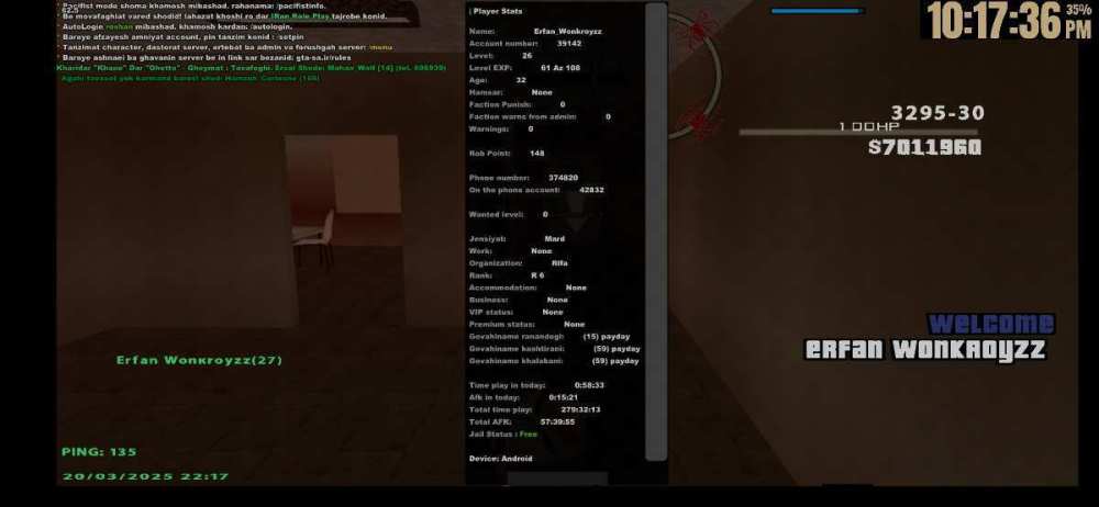 نام شما در بازی:Erfan_Wonkroyzz نام پلیری که شما از ایشان شکایت دارید:Kaka_Bloodline اطلاعات اکانت شما (Level، رنک و فکشن فعلی شما در سرور): Rifa R7 26 توضیحات شکایت:درخواست اپرا InShot_۲۰۲۵۰۳۲۴_۱۸۳۵۳۴۴۷۹.mp4 مدارک مورد نیاز (فیلم،عکس و ...)