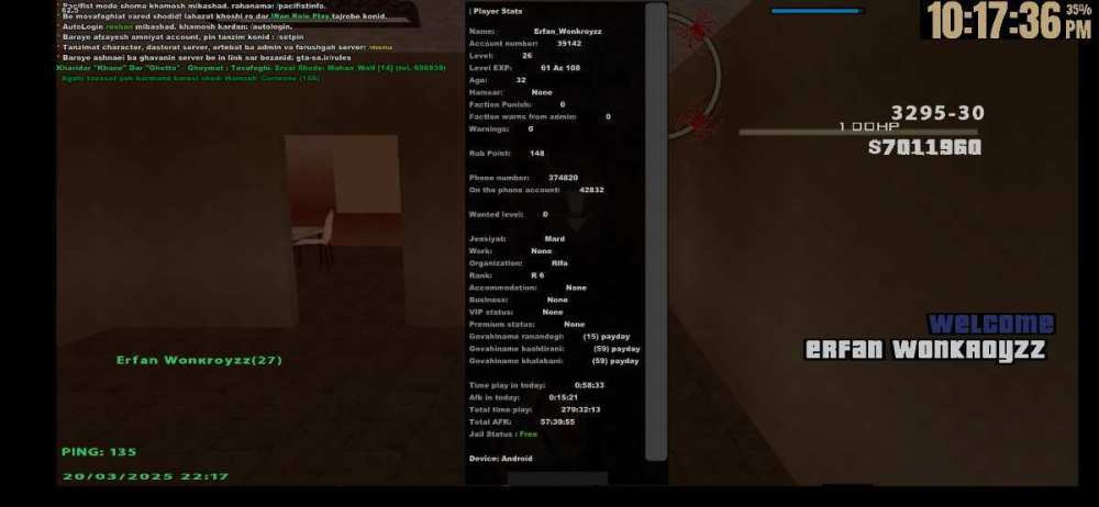 اطلاعات IC 1- نام اکانت : Erfan_Wonkroyzz 2- لول : 26 3- سن اکانت : 32 4- سابقه شما در سازمان های جنایی (به همراه رنک ها) : توجه : عکس از wbook/ و stats اکانت خود را در پیام ارسال فرم آپلود کنید . Vagos R10 Aztecas R9 Vagos R9 Rifa R8 Vagos R8 Rifa R7 Rifa R6 Vagos R7 Vagos R7 Grove R7 Grove R7 Aztecas R7 Ballas R7 Grove R7 Rifa R7 Vagos R7 Grove R7 Aztecas R7 Ballas R7 Rifa R7 Rifa R7 اطلاعات OOC 1- نام واقعی شما : عرفان 2- سن واقعی شما : 16 3- آیدی تلگرام : @Ic4iro 4 - آیدی دیسکورد : Erfan_Wonkroyzz 5- مقدار تایم پلی روزانه : بالای 4 ساعت 6- هدف شما از لیدری چیست ؟ کسب سابقه و فول گتو 7- اگر لیدر بشید قدرت و وقت کافی برای اداره اقلیت و کنترل بازیکنان داخل سازمان را دارید ؟ بله 8- چه مقدار ارپی بلدید و چه مقدار به قوانین ارپی مسلط هستید : کامل 9- در چه حد با فروم آشنایی دارید ؟ کامل 10- بر چه اساس عضو خواهید گرفت ؟ معیار شما برای عضوگیری چیست ؟ چه کسانی را وارد تیم میکنید ؟ کسایی که ایمخوب داشته باشن ، اسم ارپی داشته باشن ، قوانین بلد باشن 11- رقابت برای ورود به فکشن ها بسیار است ، به چه صورتی میتوانید پلیر های بیشتری را جذب کنید ؟ وین کردن راب ها وار ها و کپچر کردن وار های اولیه ، کمک گرفتن از اعضای کلن و فمیلی 12- فرض کنید لیدر هستید ، کار هایی که برای بهبود سازمان ها اجرا خواهید کرد را بصورت کوتاه بیان کنید : ارپی های روزانه کاشت دراگ و پر کردن کمد ، فول کردن گرافیتی ، راب شاب و راب جواهری راب آرمی و برگزاری میتینگ و ...- 9 پاسخ