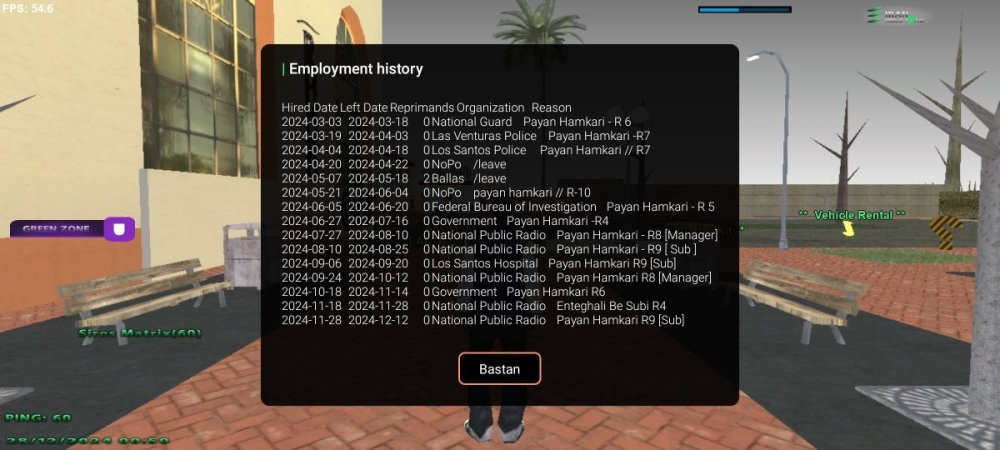 1 - نام اکانت : Siros_Matrix 2- لول : 49 ۳- سن اکانت : 44 4- سابقه شما در اقلیت های دولتی (به همراه رنک ها) : Los Santos Hospital Payan Hamkari R5 Army Payan Hamkari R6 LVPD Payan Hamkari R7 LSPD Payan Hamkari R7 Nopo Payan Hamkari R10 fBI Payan Hamkari R5 Government Payan Hamkari R4 News R8 [Manager] News R9 [Sub] LS-MC R9 [SUB] News R8 [Manager] Government R6 [Minster Of Health] Now News R9 [SUB] اطلاعات OOC 1- نام واقعی شما : دیار 2- سن واقعی شما : 17 3- آیدی تلگرام : Dakal1 4 - آیدی دیسکورد : Dakal__ 5- مقدار تایم پلی روزانه : +4 6- هدف شما از لیدری چیست ؟ کسب تجربه تاپ شدن فکشن بهبود ارپی در سرور 7- اگر لیدر بشید قدرت و وقت کافی برای اداره اقلیت و کنترل بازیکنان داخل اقلیت را دارید ؟ بله کاملا خودم رو صرف بهبود فکشن میکنم 8- چه مقدار ارپی بلدید و چه مقدار به قوانین ارپی مسلط هستید : کاملا قوانین سرور و فکشن ها مسلط هستم 9- آیا تا به حال برترین کارمند هفته دولتی بودهاید؟ و اگر بودهاید تعداد را بنویسید. Army Government 10- در چه حد با فروم آشنایی دارید ؟ کاملا 11- بر چه اساس عضو خواهید گرفت ؟ معیار شما برای عضوگیری چیست ؟ چه کسانی را وارد تیم میکنید ؟ داشتن سابقه مورد نیاز بلد بودن قوانین سرور و فکشن به صورت کامل داشتن لول مورد نیاز 12- رقابت برای ورود به فکشن ها بسیار است ، به چه صورتی میتوانید پلیر های بیشتری را جذب کنید ؟ گزاشتن میتینگ های جایزه دار هر روز به افراد برتر فکشن جایزه داده میشه تبلیغات در /Gov دادن رنک تشویقی به افراد برتر فکشن 13- فرض کنید لیدر هستید ، ایده هایی که برای بهبود سازمان ها اجرا خواهید کرد را بصورت کوتاه بیان کنید : برگزاری میتینگ انتخاب ساب و منیجر مناسب به ممبر ها جایزه داده میشه برای تشویق انها برخورد با افراد بی نظم دادن رنک تشویقی به افراد برتر فکشن 🔸فرم را پر کنید و در همین بخش ارسال نمایید🔸 -