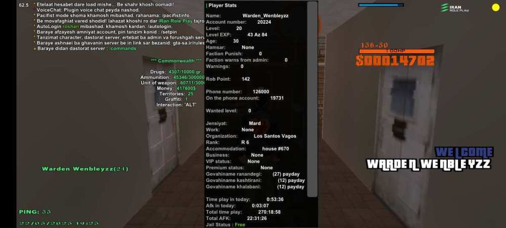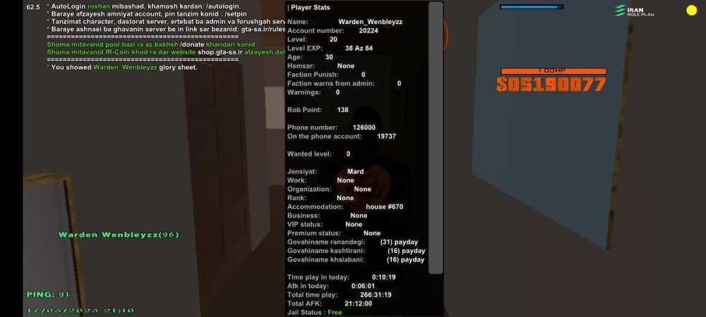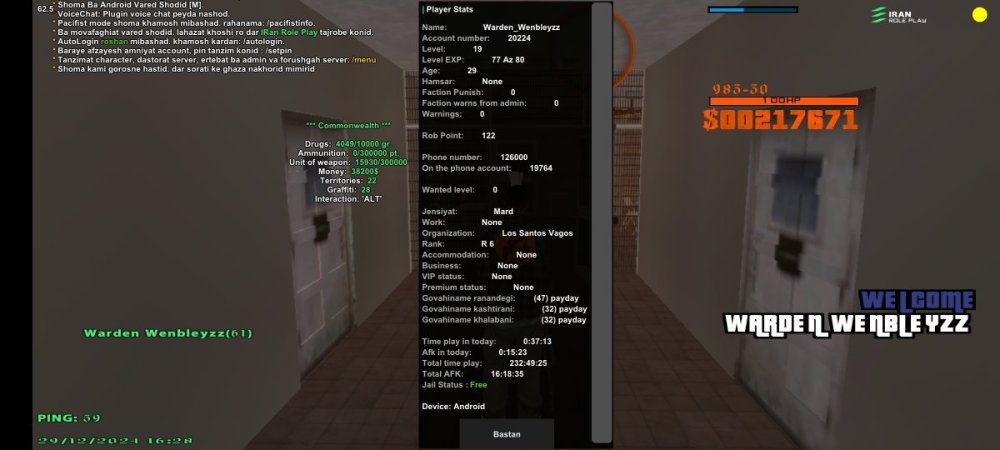 1 - نام حساب کاربری شما :Warden_Wenbleyzz