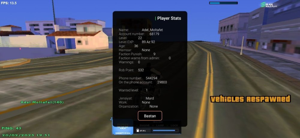 5. راهنما : جهت درخواست عضویت در گنگ Ballas فرم زیر را پر کرده سپس در همین بخش ارسال نمایید. اطلاعات IC 1 - نام حساب کاربری شما : Ivan_Dethroyzz 2 - سطح حساب کاربری شما : 25 ۳ - سن شخصیت حساب کاربری شما :39 4 - سوابق خود را در سازمان های جنایی شرح دهید : Aztecas Demot Leader Ballas Demot Leader توجه : عکس از wbook/ و stats/ حساب کاربری خود را حتما در پیام ارسال فرم بارگذاری کنید. اطلاعات OOC 1 - آیدی تلگرام : @To_Bgo_Adel 2 - آیدی دیسکورد :ندارم 3 - مقدار تایم پلی روزانه :۲+ 4 - در چه حد از رول پلی آگاهی دارید و به قوانین آن مسلط هستید ؟کاملا مسلط هستم 5 - در چه حد با نحوه کارکرد سایت انجمن آشنایی دارید ؟full 🔸در صورتی که رهبر مربوطه شما را انتخاب کند، با شما در قسمت پیام های شخصی انجمن در ارتباط خواهد بود🔸