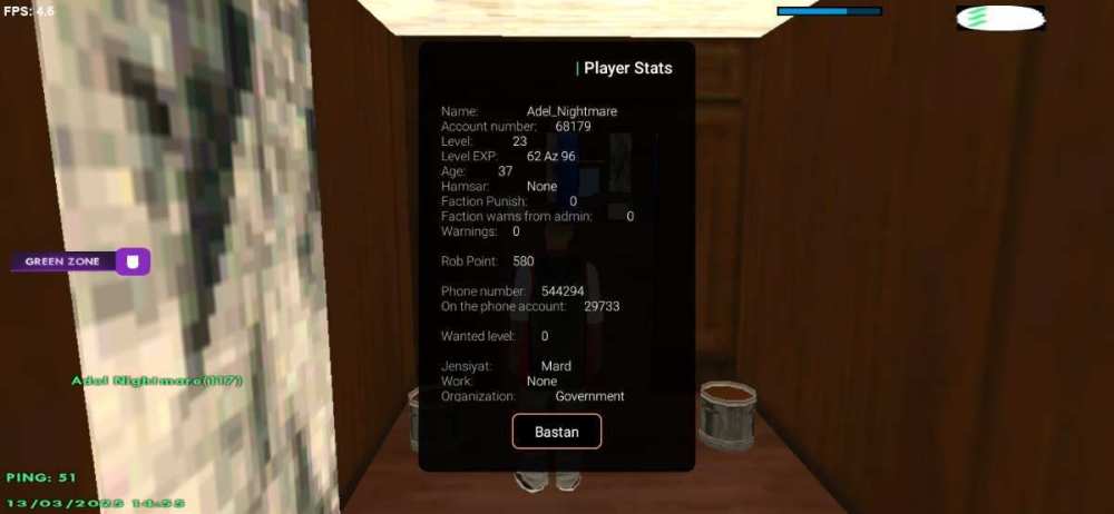 8. نام شما در بازی: Adel_Nightmare نام پلیری که شما از ایشان شکایت دارید:Amir_Asgard اطلاعات اکانت شما (Level، رنک و فکشن فعلی شما در سرور): من رنک ۳ گاورمنت ام توضیحات شکایت: سلام و درود ایشون در زمان آن دیوتی چطوری وارد گتو و خرید و فروش میکنه و اینکه با چه حقی به فم ملتفت بی احترامی میکنه توی قوانین هم نوشته که در زمان آن دیوتی نمی‌تونید وارد شهر بشید مگر اینکه باربری باشه . مدارک شم موجوده مدارک مورد نیاز (فیلم،عکس‌و...)