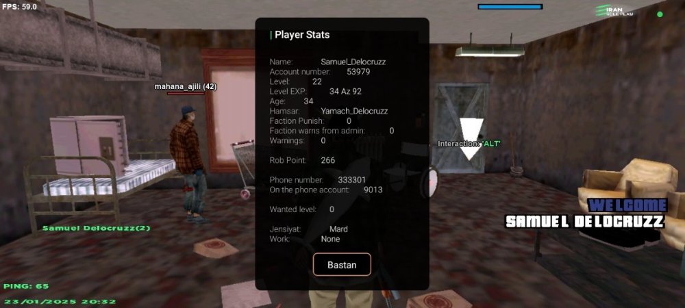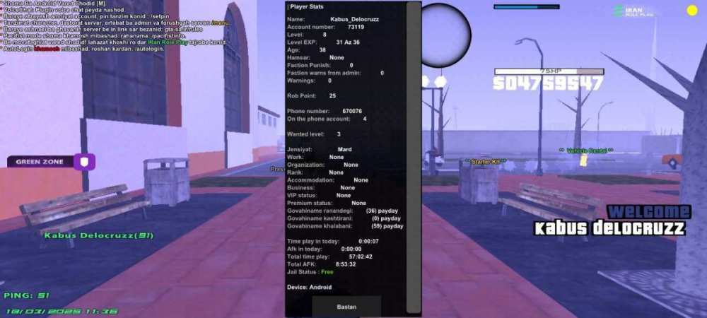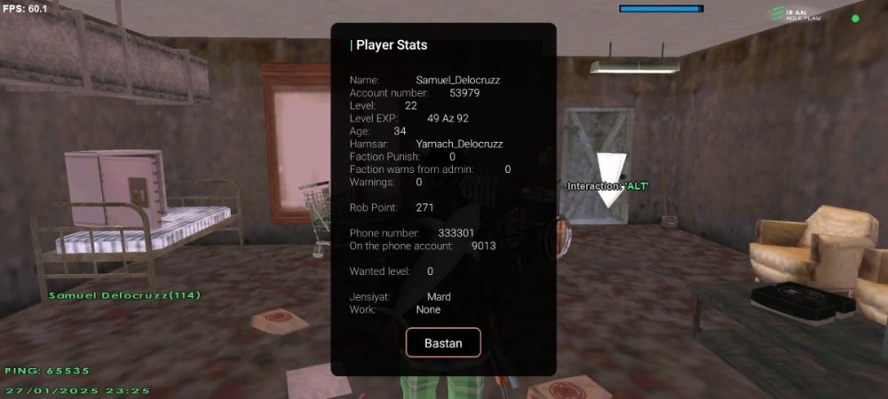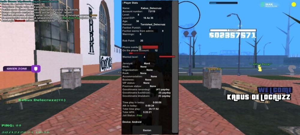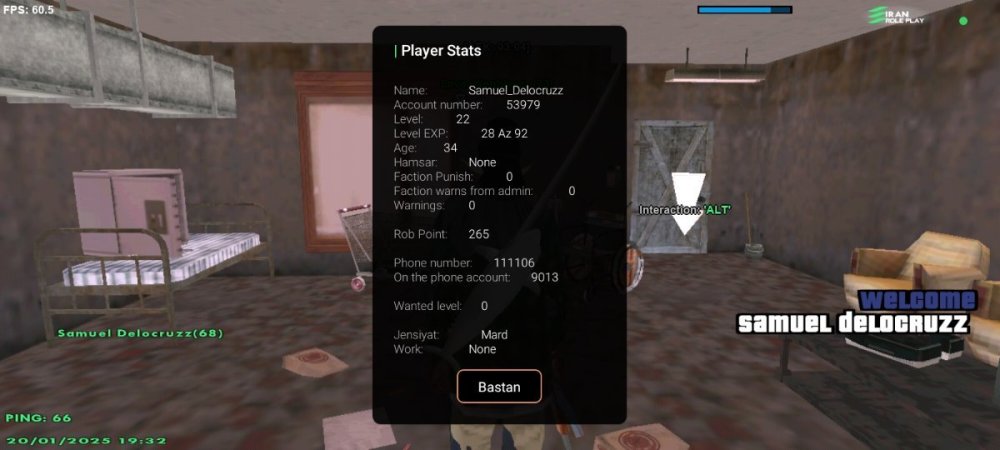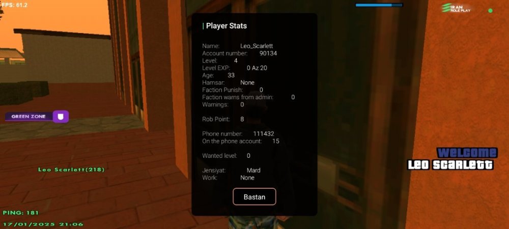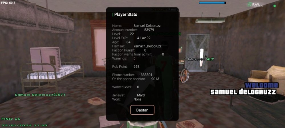 اطلاعات اکانت شما (Level، رنک و فکشن فعلی شما در سرور): Vagos R 7 , Level 21