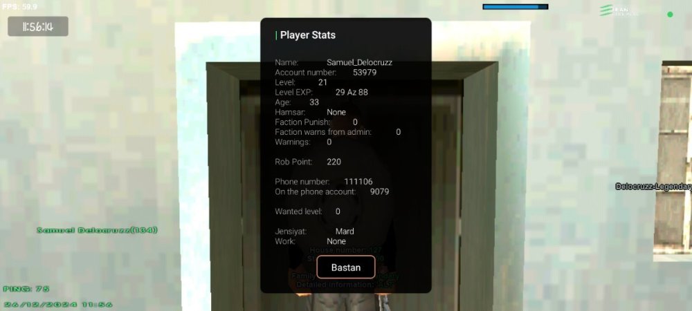 نام شما در بازی: Samuel_Delocruzz 2 - سطح حساب کاربری شما : 21 ۳ - سن شخصیت حساب کاربری شما :33 4 - سوابق خود را در سازمان های جنایی شرح دهید: Grove R 6 Aztecas R 7 Ballas R 7 Grove Kick Grove R 7 Grove R 7 Full Rifa R 7 Full توجه : عکس از wbook/ و stats/ حساب کاربری خود را حتما در پیام ارسال فرم بارگذاری کنید. اطلاعات OOC 1 - آیدی تلگرام :@StyleBloody 2 - آیدی دیسکورد : 3 - مقدار تایم پلی روزانه :+3 4 - در چه حد از رول پلی آگاهی دارید و به قوانین آن مسلط هستید ؟ کامل 5 - در چه حد با نحوه کارکرد سایت انجمن آشنایی دارید ؟ کامل 🔸در صورتی که رهبر مربوطه شما را انتخاب کند، با شما در قسمت پیام های شخصی انجمن در ارتباط خواهد بو -