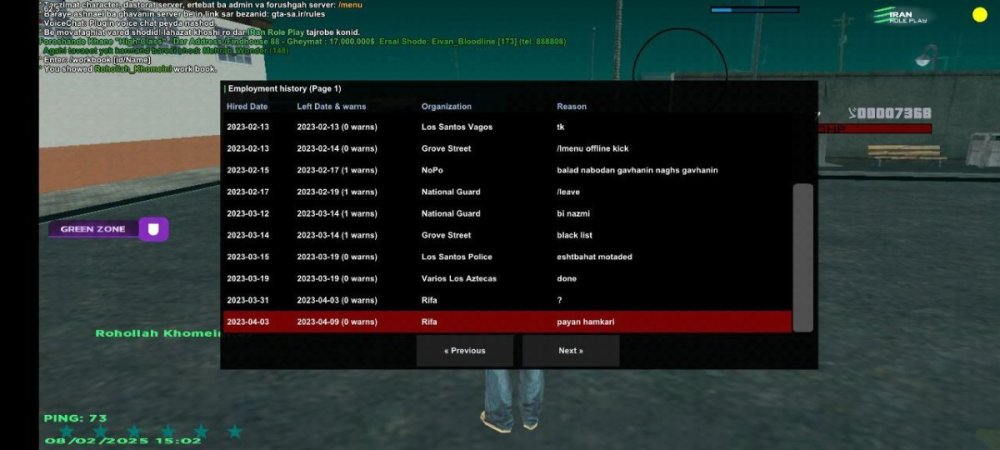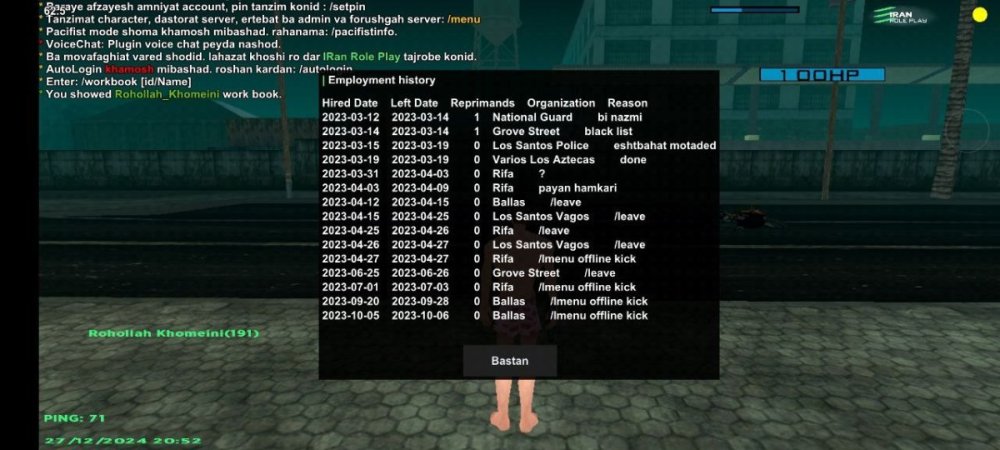 Ben_Florenciia پاسخی برای AmirSh ارسال کرد در موضوع : درخواست عضویت در سازمان های جنایی (Gang)