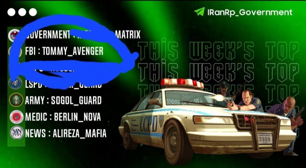 2. IC 1 - نام اکانت : Tommy_Corleone 2 - لول : 38 3 - سن اکانت :54 4 - سابقه شما در اقلیت های دولتی (به همراه رنک ها) : LS-MC Payan Hamkari-R7 Army Payan Hamkari-R9[Top Member] Lvpd Payan Fasl R5 Lvpd Payan Hamkari-R 8 LSPD Payan Hamkari-R7 NOPO Payan Hamkari-R9 FBI Payan Hamkari-R8[Top Member] Government Payan Hamkari R5 [Moaven] LS-MC Payan Hamkari [Sub] Army Entgali Be Subi R8 Army Payan Hamkari[Sub] Army Leader Demote توجه : عکس از Wbook/ و Stats اکانت خود را در پیام ارسال فرم آپلود کنید. ( اگر‌ درحال حاضر در سازمانی هستید اسم فکشن و رنکتون هم ارسال کنید [ اطلاعات OOC ] 1 - نام واقعی شما : امیررضا 2 - سن واقعی شما :‌16 3 - آیدی تلگرام : @Bazandeh_bad 4 - آیدی دیسکورد : Walton_Killer 5 - مقدار تایم پلی روزانه : 7+ 6 - هدف شما از لیدری چیست ؟ کسب تجربه تاپ کردن فکشن 7 - اگر لیدر بشید قدرت و وقت کافی برای اداره اقلیت و کنترل بازیکنان داخل اقلیت را دارید ؟ بله 8 - چه مقدار ارپی بلدید و چه مقدار به قوانین ارپی مسلط هستید ؟ کامل 9 - آیا تا به حال برترین کارمند هفته دولتی بوده‌اید ؟ و اگر بوده‌اید تعداد را بنویسید : بلع ۲ بار Army FBI 10 - در چه حد با فروم آشنایت دارید ؟ کامل 11 - بر چه اساس عضو خواهید گرفت ؟ معیار شما برای عضوگیری چیست ؟ چه کسانی را وارد تیم میکنید ؟ افراد با تجربه و دارای فعالیت و دارای سابقه مورده نیاز فکشن اخلاق خوب و دارای رفتار ارپی 12 - رقابت برای ورود به فکشن ها بسیار است ، به چه صورتی میتوانید پلیر های بیشتری را جذب کنید ؟ ایجاد ایونت جزاب و تبلیغات در /Gov 13 - فرض کنید لیدر هستید ، ایده هایی که برای بهبود سازمان ها اجرا خواهید کرد را بصورت کوتاه بیان کنید : تاپ کردن فکشن انتخاب درست ساب و منجیر فعال و ایجاد ایونت های جذاب و هیجانی