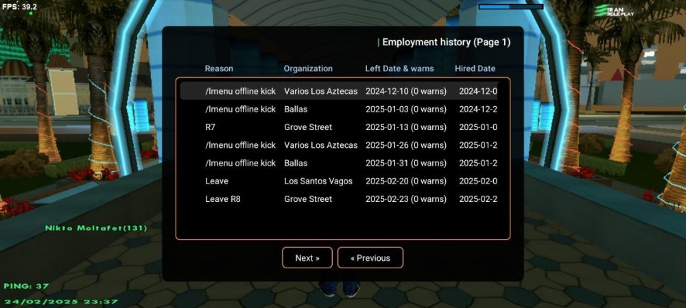 اطلاعات IC 1- نام اکانت :Nikto_Moltafet 2- لول :24 ۳- سن اکانت :26 4- سابقه شما در اقلیت های جنایی (به همراه رنک ها) :Balas// r7 Balas// r7 Vagos //r7 Vagos //r7 Aztecas //r7 Aztecas// r7 Vagos // r6 Grove //r7 Grove// r8 Vagos //r8 Rifa //r9 Rifa// r9 Vagos// r9 Vagos // r9 Grove // r10 Vagos // r10 توجه : عکس از wbook/ و stats اکانت خود را در پیام ارسال فرم آپلود کنید. ( اگر درحال حاضر در سازمانی هستید اسم فکشن و رنکتون هم ارسال کنید ) اطلاعات OOC 1- نام واقعی شما :امیر آریان 2- سن واقعی شما :16 3- آیدی تلگرام :@Nikto_Moltafet 4 - آیدی دیسکورد :@Amir_Arian_Moltafet 5- مقدار تایم پلی روزانه :6 7 6- هدف شما از لیدری چیست ؟فول گتو//کسب سابقه لیدری//یک فصل گتو در کنار ایران ارپی 7- اگر لیدر بشید قدرت و وقت کافی برای اداره اقلیت و کنترل بازیکنان داخل اقلیت را دارید ؟بله 8- چه مقدار ارپی بلدید و چه مقدار به قوانین ارپی مسلط هستید :Full 9- در چه حد با فروم آشنایی دارید ؟Full 10- بر چه اساس عضو خواهید گرفت ؟ معیار شما برای عضوگیری چیست ؟ چه کسانی را وارد تیم میکنید ؟ایم خوب//ادب//بلد بودند قوانین 11- رقابت برای ورود به فکشن ها بسیار است ، به چه صورتی میتوانید پلیر های بیشتری را جذب کنید ؟با گزاشتن ایونت //و /paygang 12- فرض کنید لیدر هستید ، ایده هایی که برای بهبود سازمان ها اجرا خواهید کرد را بصورت کوتاه بیان کنید :راب ارمی//راب شاپ//گرافیتی//حقوق- 7 پاسخ