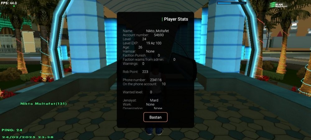 اطلاعات IC 1- نام اکانت :Nikto_Moltafet 2- لول :24 ۳- سن اکانت :26 4- سابقه شما در اقلیت های جنایی (به همراه رنک ها) :Balas// r7 Balas// r7 Vagos //r7 Vagos //r7 Aztecas //r7 Aztecas// r7 Vagos // r6 Grove //r7 Grove// r8 Vagos //r8 Rifa //r9 Rifa// r9 Vagos// r9 Grove // r10 توجه : عکس از wbook/ و stats اکانت خود را در پیام ارسال فرم آپلود کنید. ( اگر درحال حاضر در سازمانی هستید اسم فکشن و رنکتون هم ارسال کنید ) اطلاعات OOC 1- نام واقعی شما :امیر اریان 2- سن واقعی شما :16 3- آیدی تلگرام :@Nikto_Moltafet 4 - آیدی دیسکورد :@Amir_Arian_Moltafet 5- مقدار تایم پلی روزانه :6 7 6- هدف شما از لیدری چیست ؟سابقه لیدری//فول گتو//یک فصل با مقام لیدری در ایران ار پی 7- اگر لیدر بشید قدرت و وقت کافی برای اداره اقلیت و کنترل بازیکنان داخل اقلیت را دارید ؟بله 8- چه مقدار ارپی بلدید و چه مقدار به قوانین ارپی مسلط هستید :کاملا بلدم 9- در چه حد با فروم آشنایی دارید ؟فول 10- بر چه اساس عضو خواهید گرفت ؟ معیار شما برای عضوگیری چیست ؟ چه کسانی را وارد تیم میکنید ؟ایمخوب//داشتن ادب//لول مناسب 11- رقابت برای ورود به فکشن ها بسیار است ، به چه صورتی میتوانید پلیر های بیشتری را جذب کنید ؟pay gang 12- فرض کنید لیدر هستید ، ایده هایی که برای بهبود سازمان ها اجرا خواهید کرد را بصورت کوتاه بیان کنید :pay gang//rob army//rob javaheri//robshop//gerafiti -