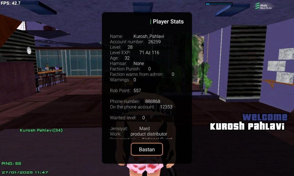 اطلاعات اکانت شما (Level، رنک و فکشن فعلی شما در سرور):لول 23_ فکشنی ندارم