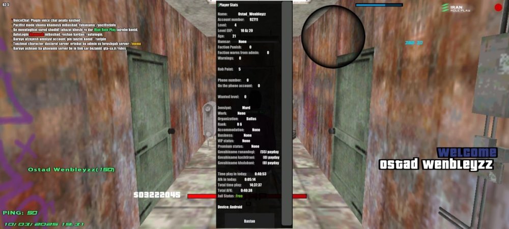 نام شما در بازی:Ostad_Wenbleyzz نام پلیری که شما از ایشان شکایت دارید:Cerberus_Terezz اطلاعات اکانت شما (Level، رنک و فکشن فعلی شما در سرور):لول ۴ رنک ۶ واگوس توضیحات شکایت:spread/w.edit مدارک مورد نیاز (فیلم،عکسو...) VID_20250325_193418.mp4