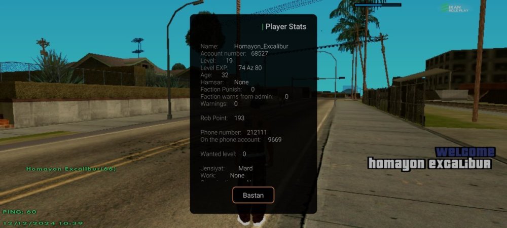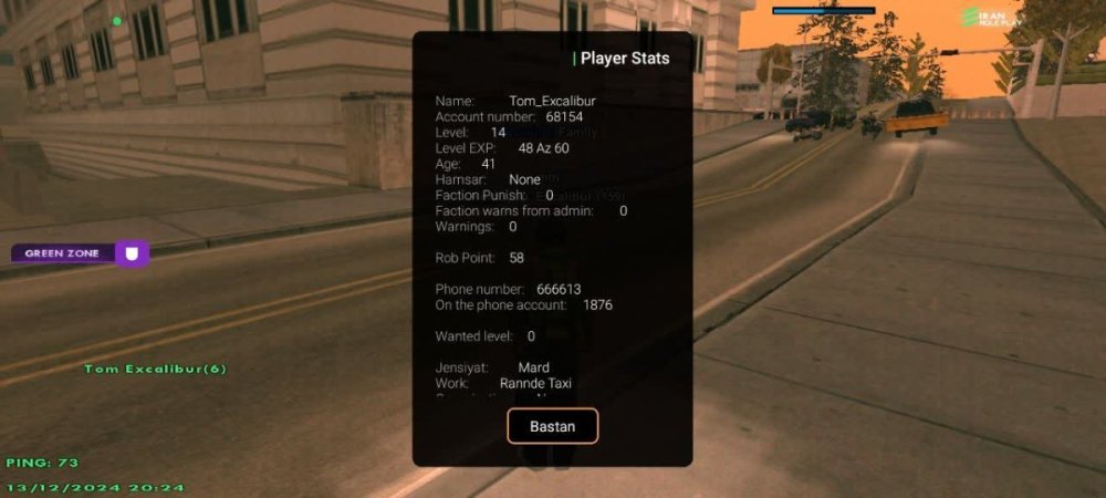 اطلاعات اکانت شما (Level، رنک و فکشن فعلی شما در سرور): لول:۱۴
