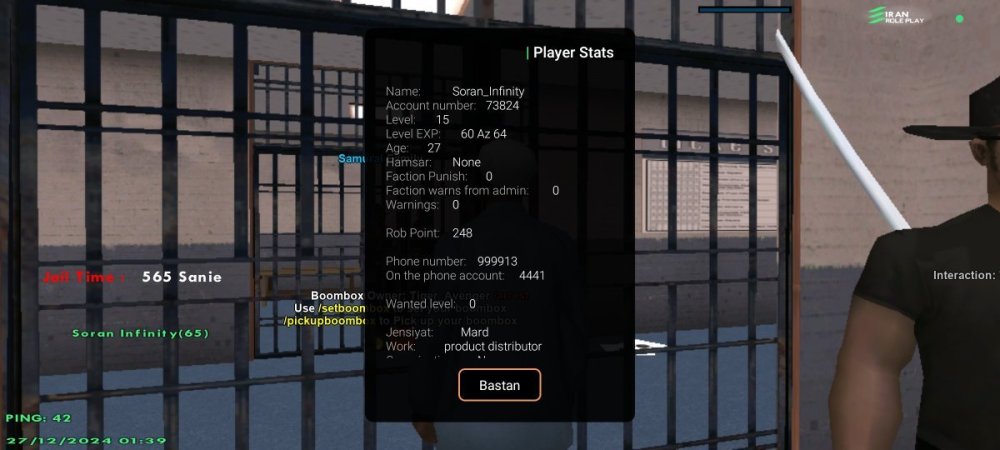 سلام و درود خدمت شما نام شما در بازی:Sayeh_Cia اطلاعات اکانت شما( Level ،رنک و فکشن فعلی شما در سرور) واگوس رنک 6 لول : 16 ممبر واگوس توضیحات: جناب لیدر محترم بجوز من 2 نفر دیگه اونجا بودن و اون ها هم میزدن شما ی نقطه جمع شدید اونا از جلو و پشت زدن و این دلیل نمیشه من چیت داشته باشم و منم ب دلیل نداشتن شارژ گوشی ریکوردم آن میشود خود ب خود قطع میشود اگر ریک لازم هست ریک از کسانی ک اونجا بودند میتونم اراعه بدم با تشکر از تیم ایران رول پلی