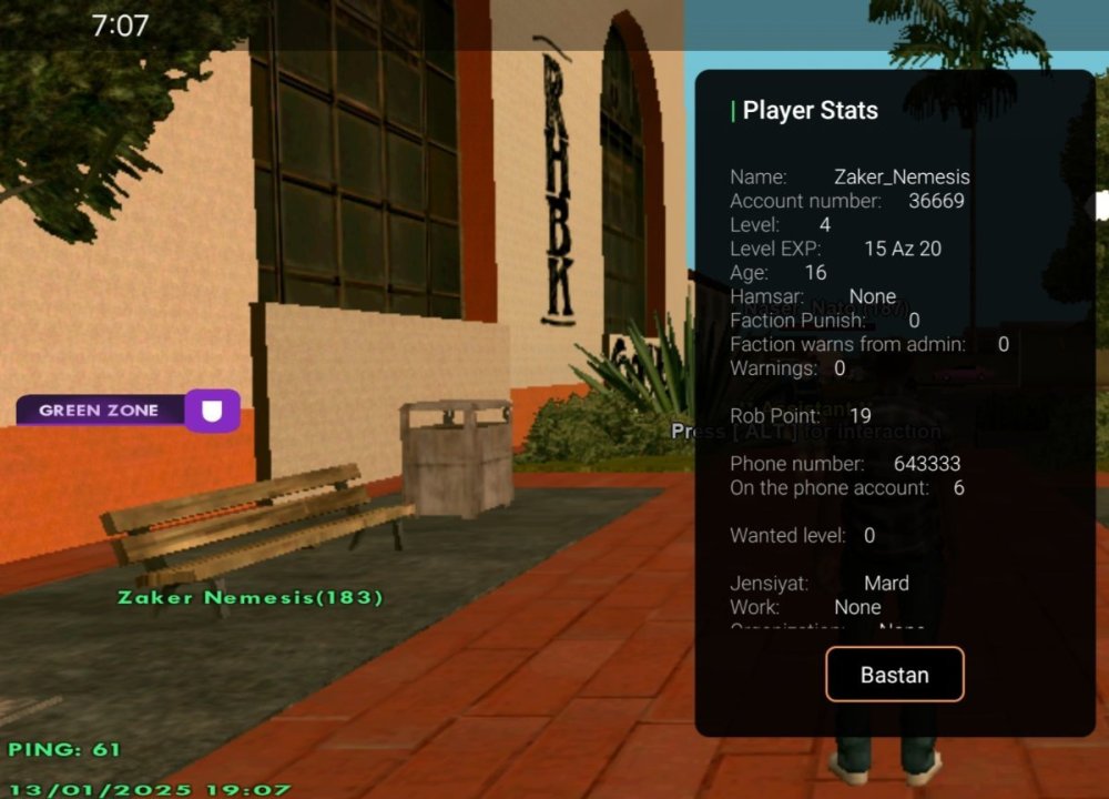 نام شما در بازی: Zaker_Nemesis نام پلیری که شما از ایشان شکایت دارید: Sina_Corleone اطلاعات اکانت شما (Level، رنک و فکشن فعلی شما در سرور): 5 هیچ فکشنی حضور ندارم توضیحات شکایت: vdm بی دلیل چند بار vdm کرد XRecorder_15012025_193702.mp4 مدارک مورد نیاز (فیلم،عکسو...) XRecorder_15012025_193702.mp4
