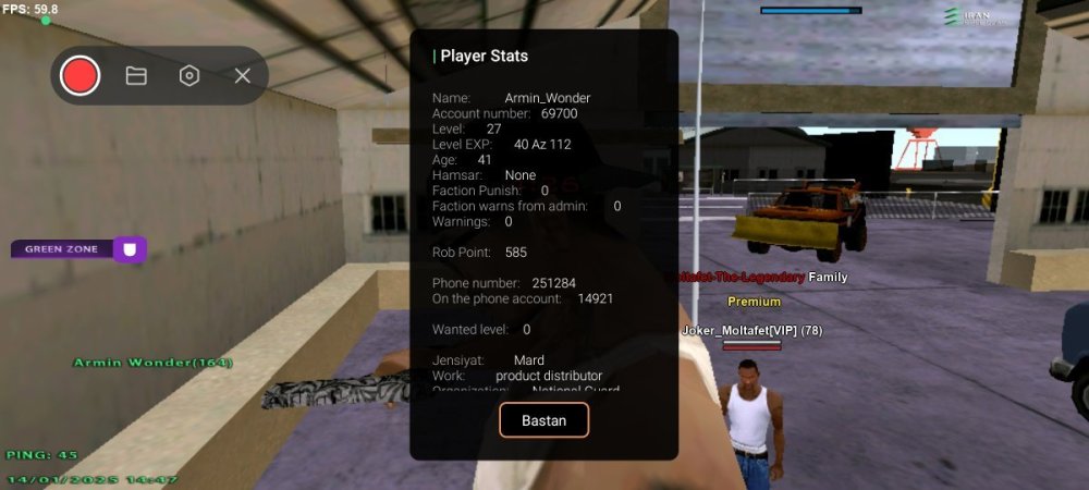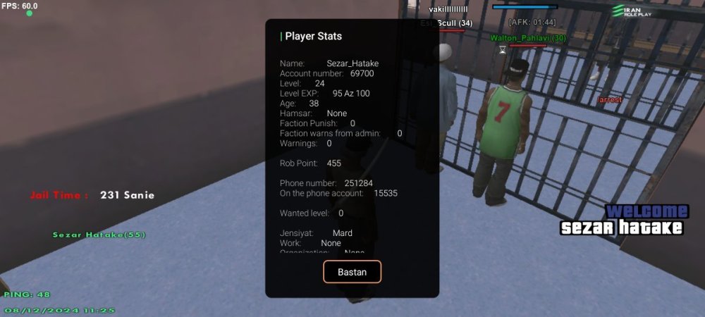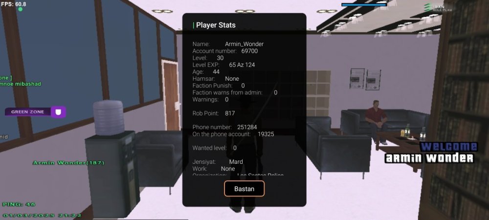 اطلاعات اکانت شما (Level، رنک و فکشن فعلی شما در سرور):