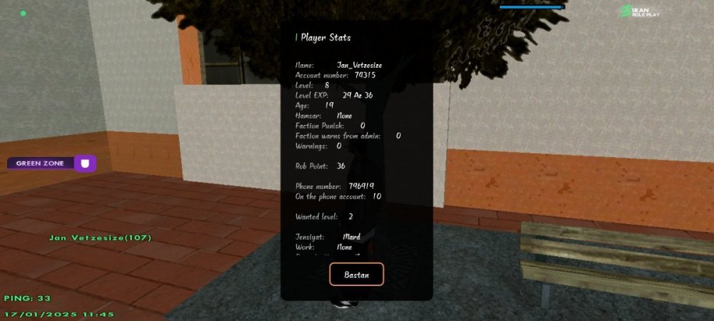 اطلاعات IC 1 - نام حساب کاربری شما :Jan Vetzesize 2 - سطح حساب کاربری شما :8 ۳ - سن شخصیت حساب کاربری شما :20 4 - سوابق خود را در سازمان های جنایی شرح دهید : Grove r7 full Rifa R7 Full Grove r7 Grove r7 leave Aztecs r6 Ballas r7 etmam fasl Grove r7 etmam fasl توجه : عکس از wbook/ و stats/ حساب کاربری خود را حتما در پیام ارسال فرم بارگذاری کنید. اطلاعات OOC 1 - آیدی تلگرام :@Qollye 2 - آیدی دیسکورد :- 3 - مقدار تایم پلی روزانه :+2 4 - در چه حد از رول پلی آگاهی دارید و به قوانین آن مسلط هستید ؟Full 5 - در چه حد با نحوه کارکرد سایت انجمن آشنایی دارید ؟full -