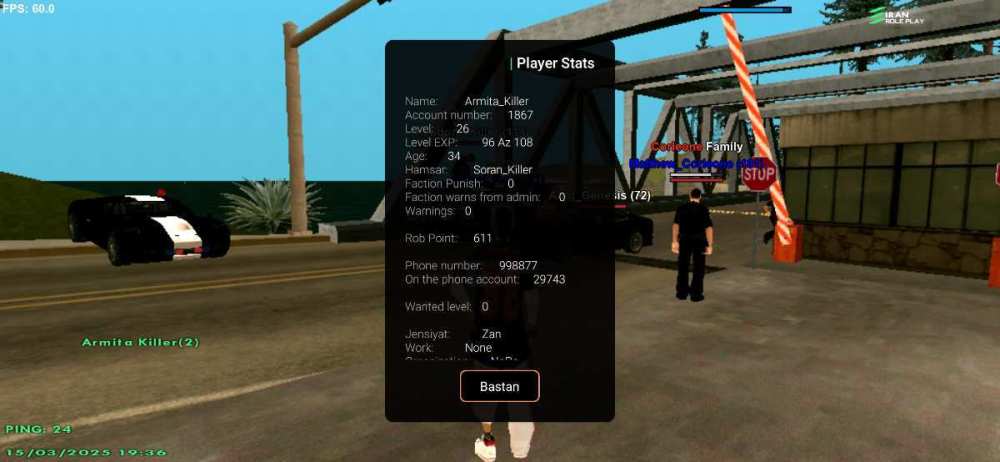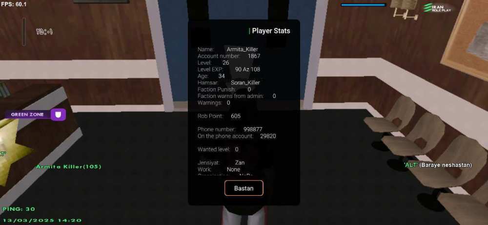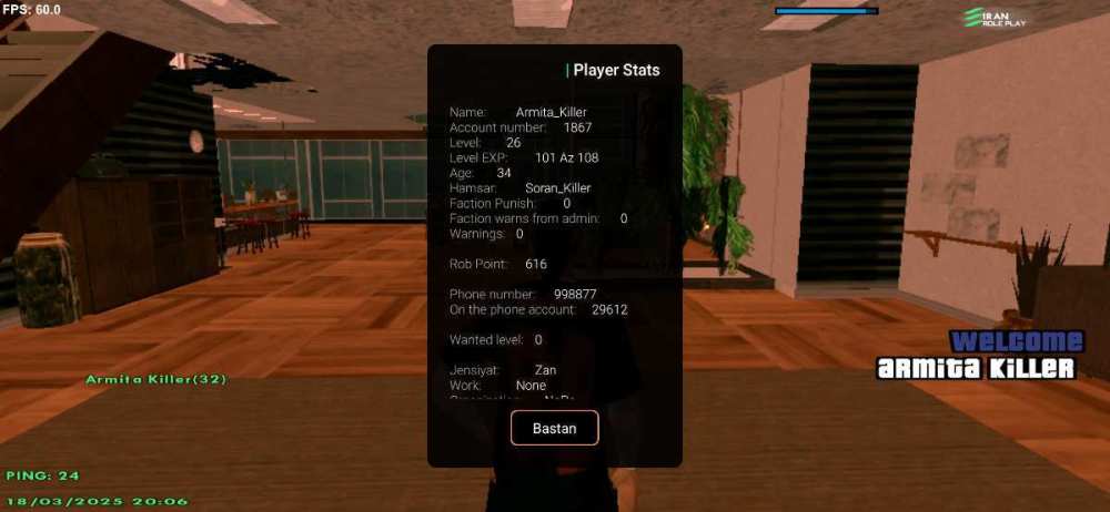 اطلاعات اکانت شما (Level، رنک و فکشن فعلی شما در سرور): level 28