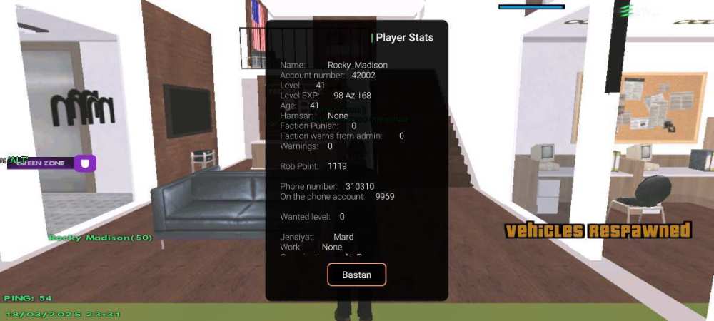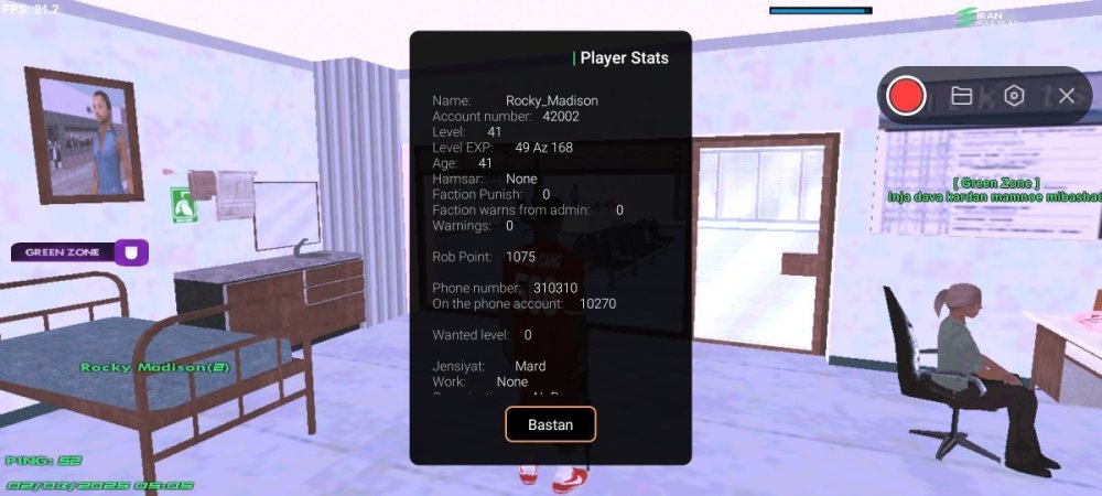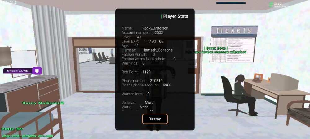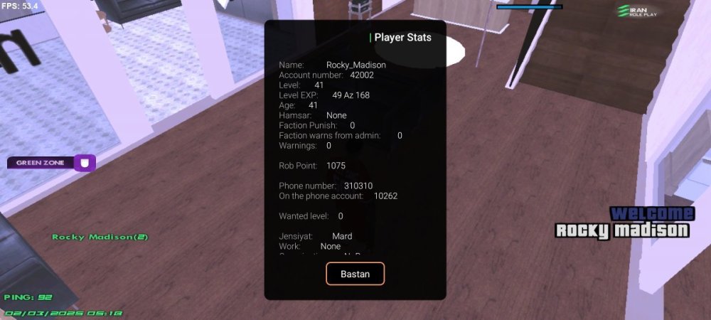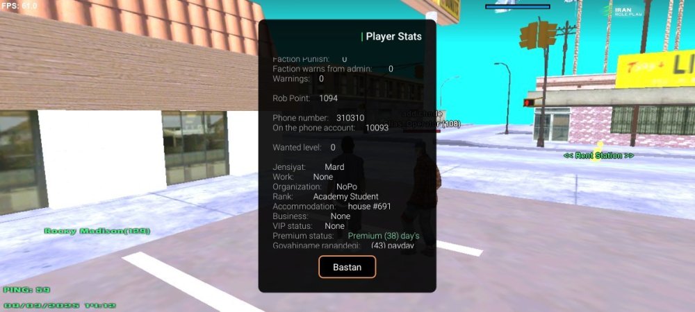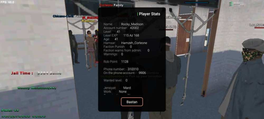 اطلاعات اکانت شما (Level، رنک و فکشن فعلی شما در سرور):
