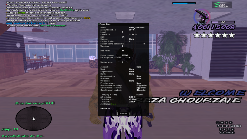 7. اطلاعات IC 1- نام حساب کاربری شما : Reza_Ghourzaie 2- سطح حساب کاربری : 5 3- سن شخصیت حساب کاربری شما : 21 4- سوابق خود را در سازمان های جنایی شرح دهید : - توجه : عکس از wbook/ و stats/ حساب کاربری خود را حتما در پیام ارسال فرم بارگذاری کنید اطلاعات OOC 1- آیدی تلگرام : @tHe_bOyQ 2- آیدی دیسکورد : - 3- مقدار تایم پلی روزانه : +3 4- در چه حد از رول پلی آگاهی دارید و به قوانین آن مسلط هستید ؟ کامل 5- در چه حد با نحوه کارکرد سایت انجمن اشنایی دارید ؟ کامل