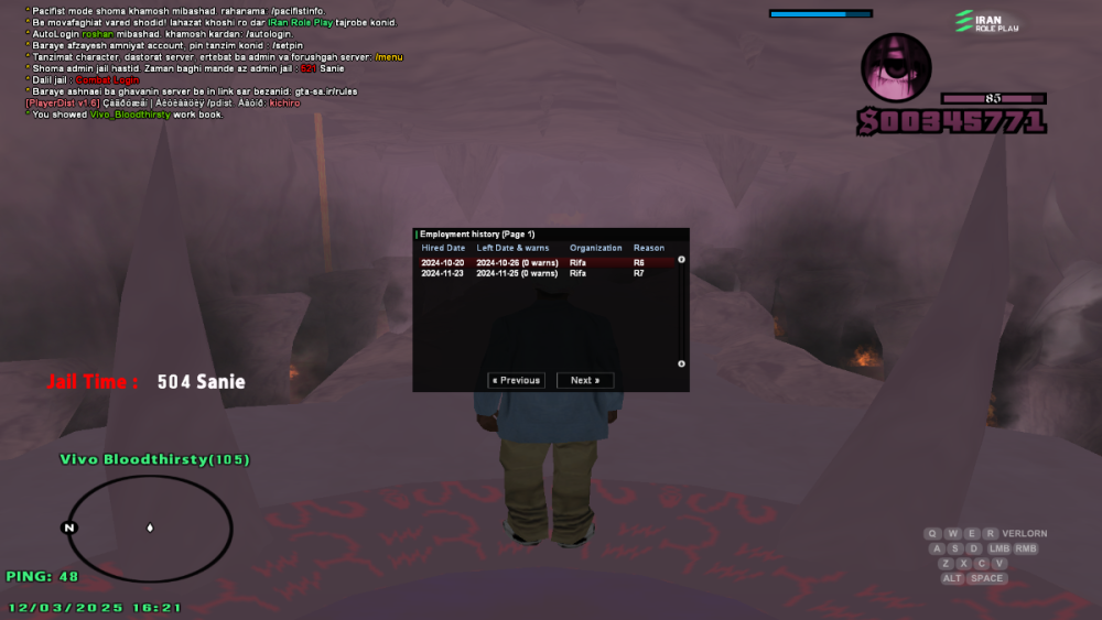 12. اطلاعات IC 1 - نام حساب کاربری شما :Mory_Wenbleyzz 2 - سطح حساب کاربری شما : 10 ۳ - سن شخصیت حساب کاربری شما : 25 4 - سوابق خود را در سازمان های جنایی شرح دهید : (R7 rifa) (R6 rifa) توجه : عکس از wbook/ و stats/ حساب کاربری خود را حتما در پیام ارسال فرم بارگذاری کنید. اطلاعات OOC 1 - آیدی تلگرام : @mAhAn_F1 2 - آیدی دیسکورد :- 3 - مقدار تایم پلی روزانه : +3 4 - در چه حد از رول پلی آگاهی دارید و به قوانین آن مسلط هستید ؟ Full 5 - در چه حد با نحوه کارکرد سایت انجمن آشنایی دارید ؟Full