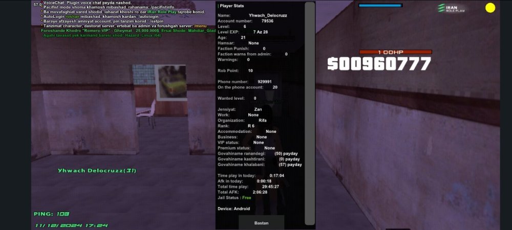 2. 1 - نام حساب کاربری شما : Benimaru_Delocruzz 2 - سطح حساب کاربری شما : 6 3 - سن شخصیت حساب کاربری شما : 21 4 - سوابق خود را در سازمان های جنایی شرح دهید : Aztecas Grove Rifa Grove توجه : عکس از wbook/ و stats/ حساب کاربری خود را حتما در پیام ارسال فرم بارگذاری کنید. اطلاعات OOC 1 - آیدی تلگرام : @wlz0x 2 - آیدی دیسکورد : 3 - مقدار تایم پلی روزانه : ۲ 4 - در چه حد از رول پلی آگاهی دارید و به قوانین آن مسلط هستید ؟ کامل 5 - در چه حد با نحوه کارکرد سایت انجمن آشنایی دارید ؟ کامل