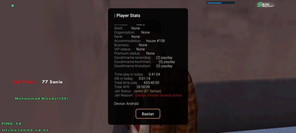 نام شما در بازی: Mohammad_Bloody نام پلیری که شما از ایشان شکایت دارید: Leon_Corleone اطلاعات اکانت شما (Level، رنک و فکشن فعلی شما در سرور) Level 23 No Faction توضیحات شکایت: وانتد بی دلیل درخواست ارائه مدرک دارم من ساعت 19:97 جیل بودم ازاد شدم همونجا دوباره بهم وانتد اتک دی ام داد. مدارک مورد نیاز (فیلم،عکسو....)https://rpfile.com/uploads/guest/2025/04/13/174457690552112.jpghttps://rpfile.com/uploads/guest/2025/04/13/174457690550261.jpghttps://rpfile.com/uploads/guest/2025/04/13/174457687362523.jpghttps://rpfile.com/uploads/guest/2025/04/13/174457687357832.jpghttps://rpfile.com/uploads/guest/2025/04/13/17445768735251.jpg