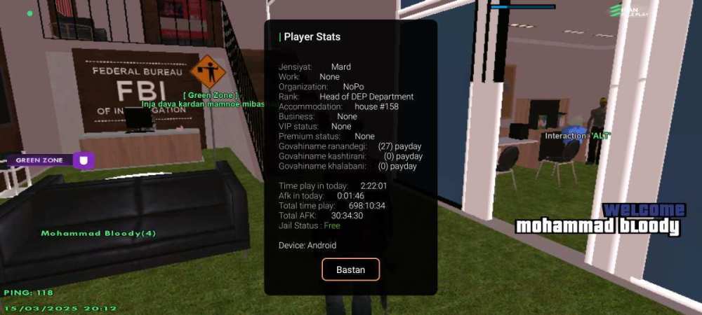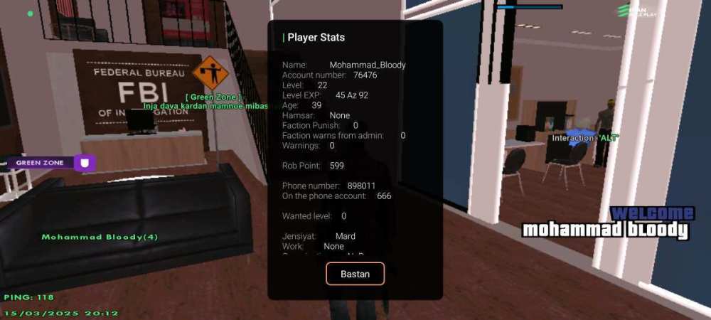 نام شما در بازی: Mohammad_Bloody نام پلیری که شما از ایشان شکایت دارید: Sonny_Dragon اطلاعات اکانت شما (Level، رنک و فکشن فعلی شما در سرور) Level 22 Fbi R6 توضیحات شکایت: ممبر فبی هستم ایستاده بودم اطراف مرز B ایشون بدون اخطار کیل کرد پیگیری کنید مدارک مورد نیاز (فیلم،عکسو....) VID_20250328_190221_043.mp4