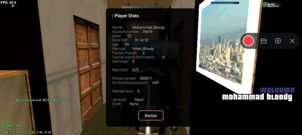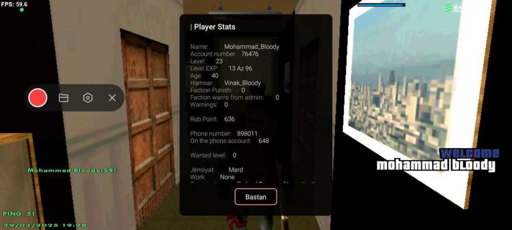 نام شما در بازی: Mohammad_Bloody نام پلیری که شما از ایشان شکایت دارید: Leo_Achaemenid اطلاعات اکانت شما (Level، رنک و فکشن فعلی شما در سرور) Level 22 Nopo R10 توضیحات شکایت: فحاشی ناموسی مدارک مورد نیاز (فیلم،عکسو....) VID_20250315_201656_161.mp4