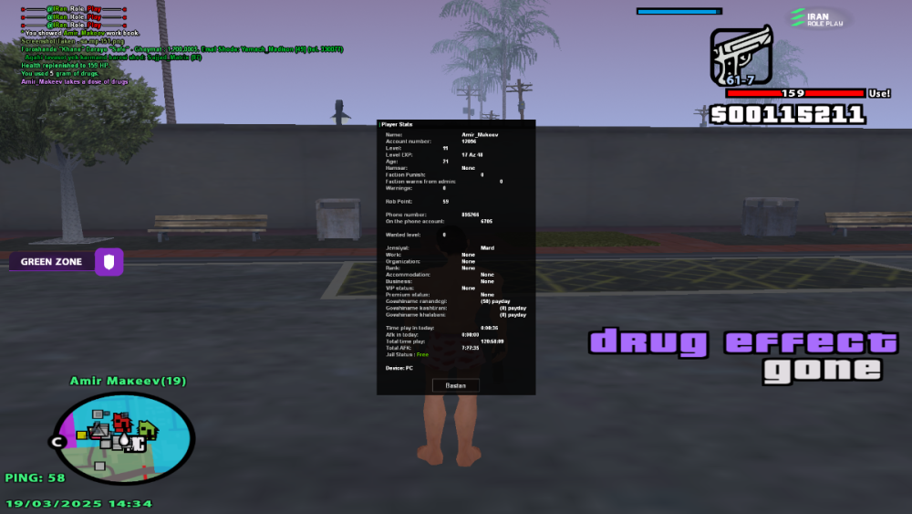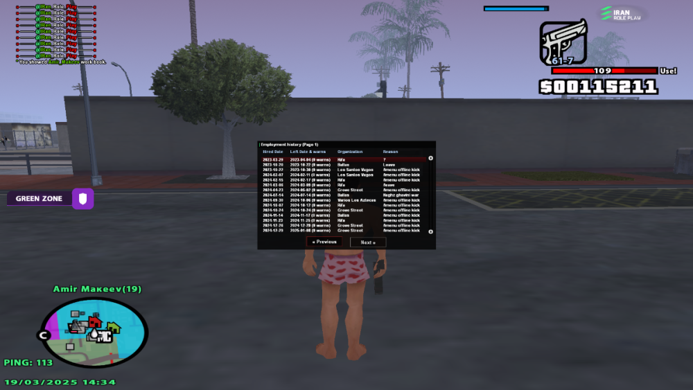 13. 1 - نام حساب کاربری شما : Amir_Makeev 2 - سطح حساب کاربری شما : 11 ۳ - سن شخصیت حساب کاربری شما : 21 4 - سوابق خود را در سازمان های جنایی شرح دهید : Ballas Aztecas Rifa Vagos Grove توجه : عکس از wbook/ و stats/ حساب کاربری خود را حتما در پیام ارسال فرم بارگذاری کنید. اطلاعات OOC 1 - آیدی تلگرام : FranticQ@ 2 - آیدی دیسکورد : - 3 - مقدار تایم پلی روزانه : +3 4 - در چه حد از رول پلی آگاهی دارید و به قوانین آن مسلط هستید ؟ کامل 5 - در چه حد با نحوه کارکرد سایت انجمن آشنایی دارید ؟ کامل