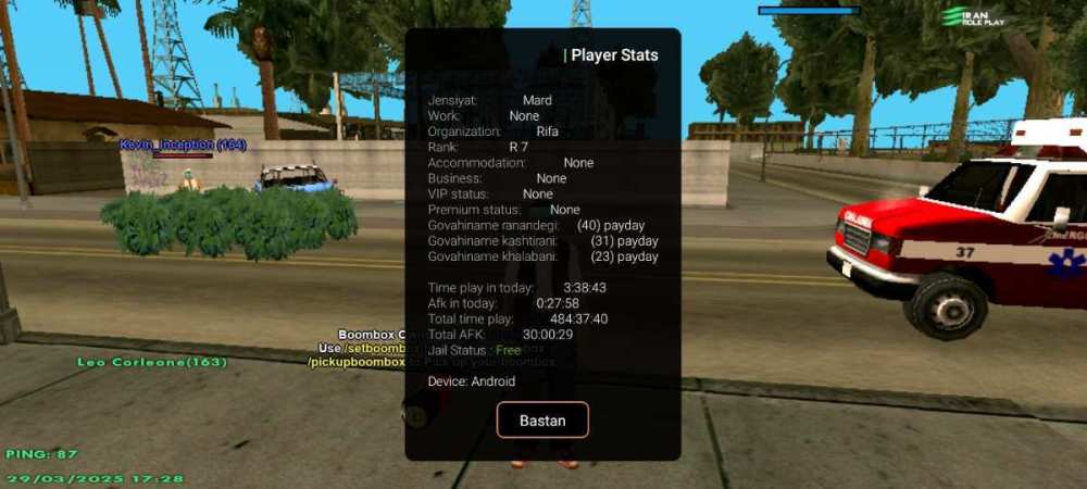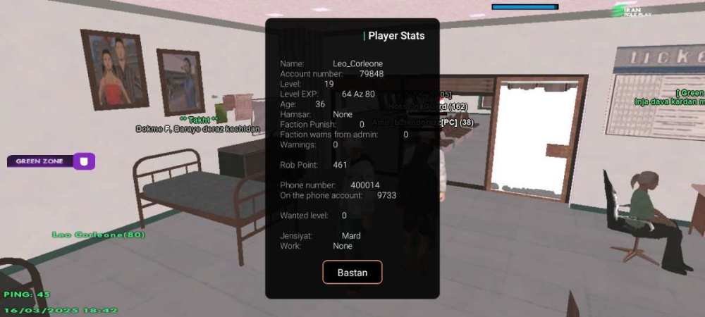 نام شما در بازی:Leo_Corleone نام پلیری که شما از ایشان شکایت دارید:Luca_Sarbaz اطلاعات اکانت شما:(لول فکشن لول): لول 22 Rifa R7 توضیحات:ایشون مدیک هستن و اومدن گتو مدرک مورد نیاز( فیلم عکس و...):