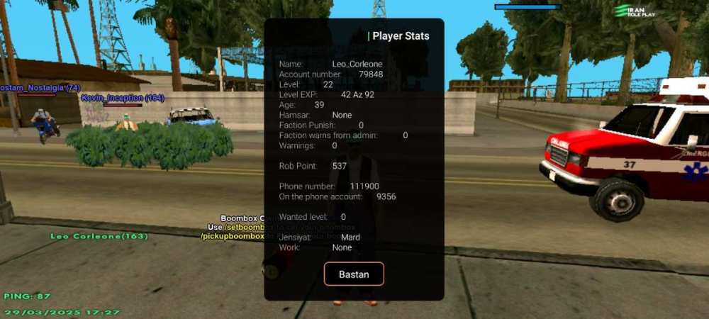 نام شما در بازی:Leo_Corleone نام پلیری که شما از ایشان شکایت دارید:Mohammad_Ranking اطلاعات اکانت شما:(لول فکشن رنک):لول 19 Medic R4 توضیحات:من در مدیک بودم و ایشون میومد منو vdm میکرد مدرک مورد نیاز:(فیلم ،عکس و...):