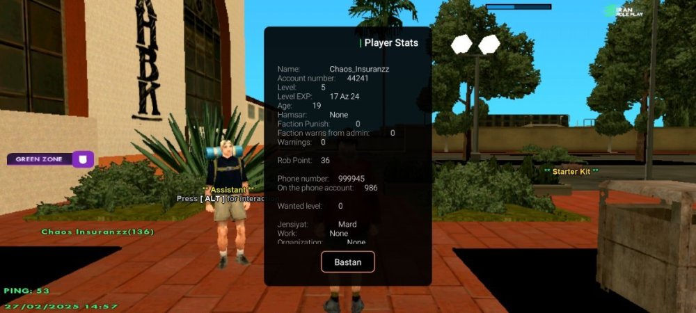 4. 1 - نام حساب کاربری شما : Chaos_Insuranzz 2 - سطح حساب کاربری شما : 5 ۳ - سن شخصیت حساب کاربری شما : 19 4 - سوابق خود را در سازمان های جنایی شرح دهید : Vagos Grove Ballas Aztecas توجه : عکس از wbook/ و stats/ حساب کاربری خود را حتما در پیام ارسال فرم بارگذاری کنید. اطلاعات OOC 1 - آیدی تلگرام : @Chaos_6666 2 - آیدی دیسکورد : chaos66 3 - مقدار تایم پلی روزانه : 3 4 - در چه حد از رول پلی آگاهی دارید و به قوانین آن مسلط هستید ؟ full 5 - در چه حد با نحوه کارکرد سایت انجمن آشنایی دارید ؟full 🔸در صورتی که رهبر مربوطه شما را انتخاب کند، با شما در قسمت پیام های شخصی انجمن در ارتباط خواهد بود🔸