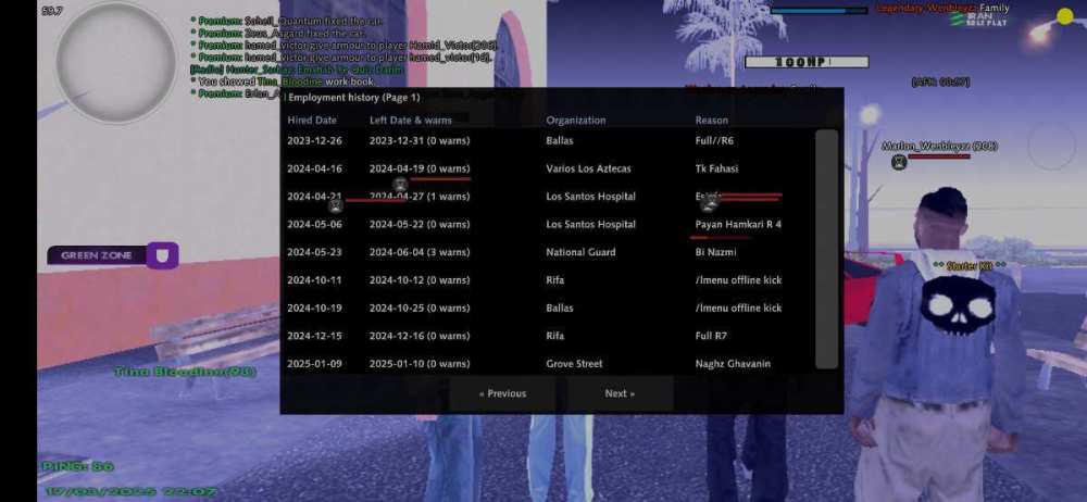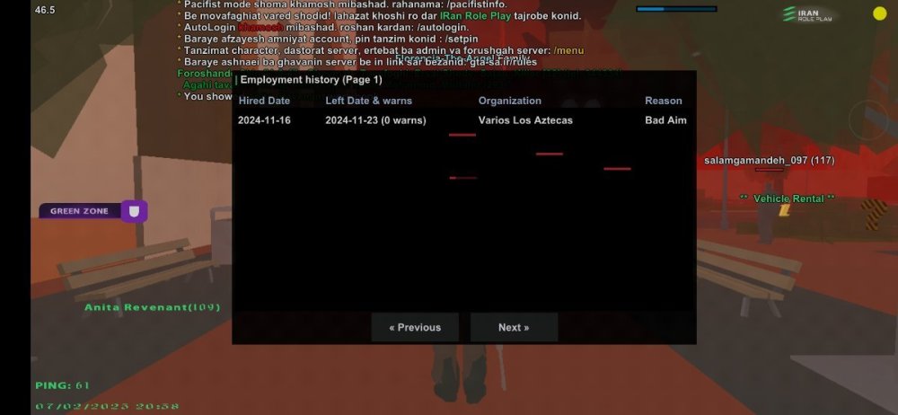 Tina_Bloodine پاسخی برای Vip_Amir ارسال کرد در موضوع : درخواست عضویت در سازمان های جنایی (Gang)
