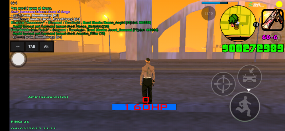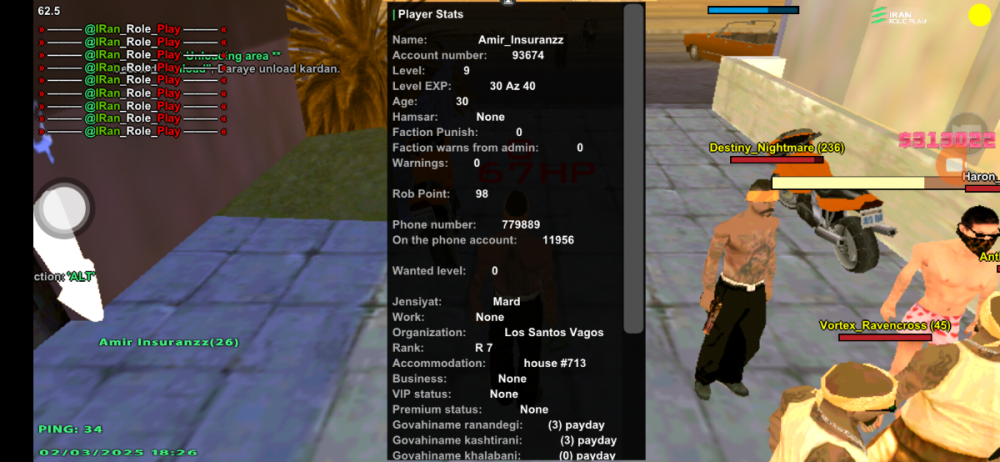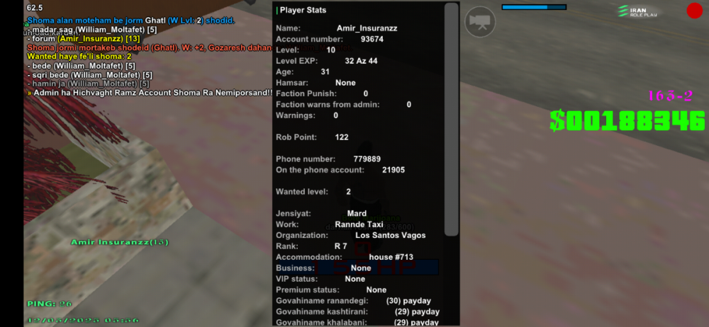 اطلاعات اکانت شما (Level، رنک و فکشن فعلی شما در سرور): 5 , 7 , Grove Street