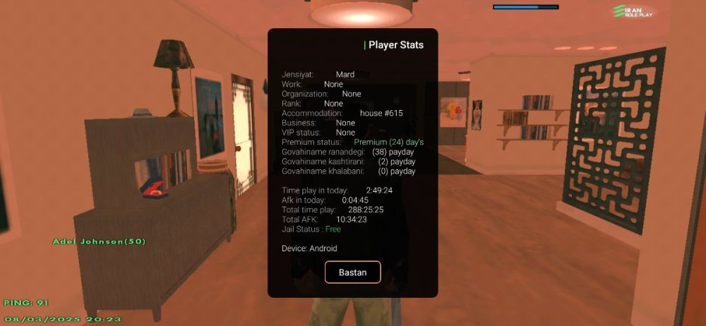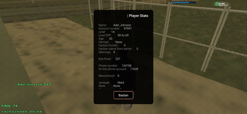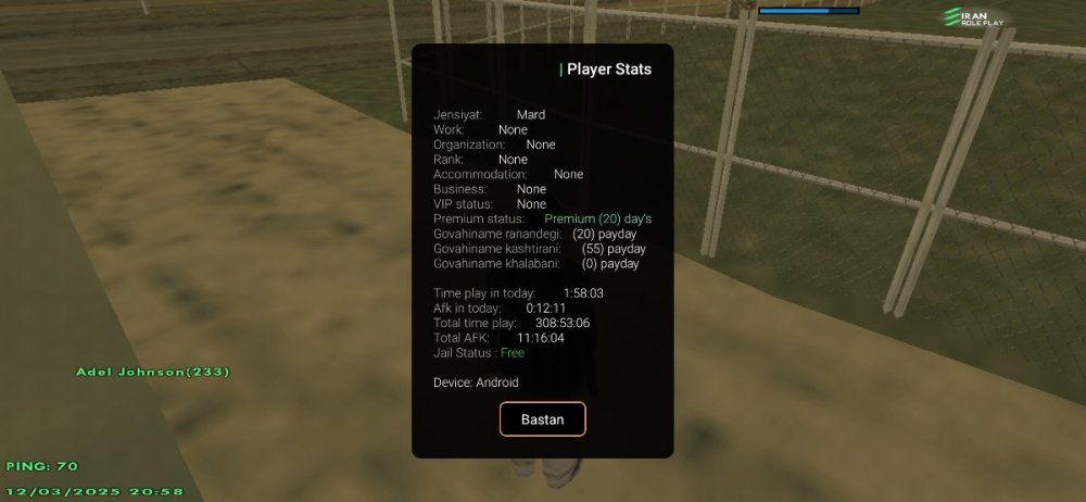 اطلاعات اکانت شما (Level، رنک و فکشن فعلی شما در سرور):در فکشنی نیستم و لول 20