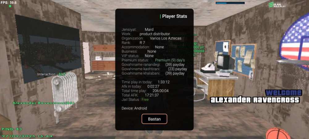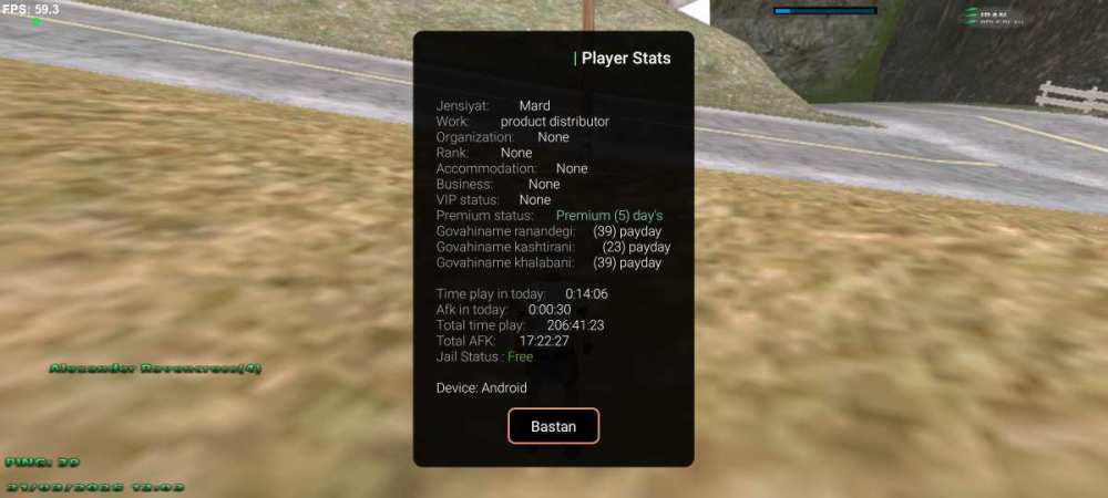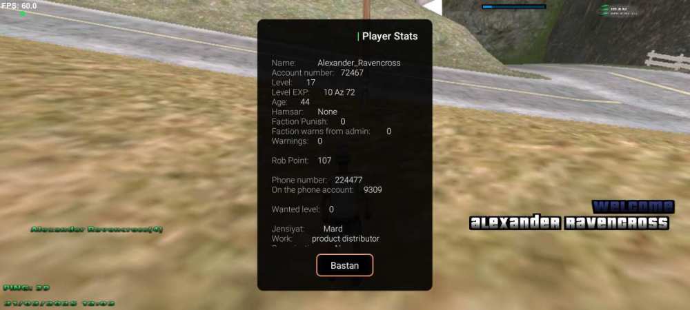اطلاعات اکانت شما (Level، رنک و فکشن فعلی شما در سرور):