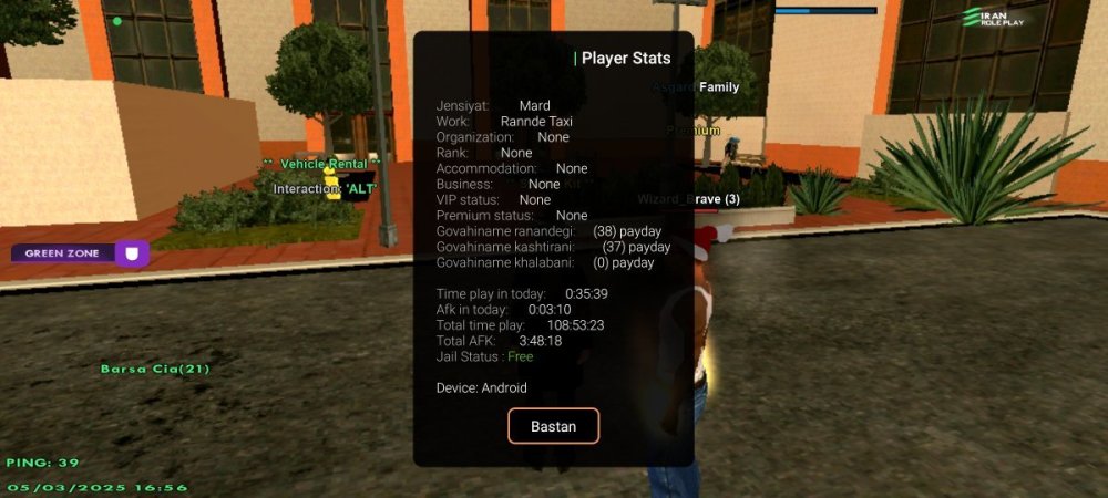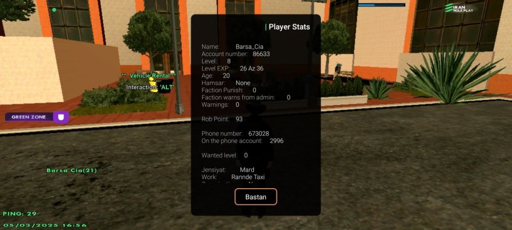 1. اطلاعات IC 1 - نام حساب کاربری شما : .mj.1388 2 - سطح حساب کاربری شما : ۱ ۳ - سن شخصیت حساب کاربری شما :۱۸ 4 - سوابق خود را در سازمان های جنایی شرح دهید : توجه : عکس از wbook/ و stats/ حساب کاربری خود را حتما در پیام ارسال فرم بارگذاری کنید. اطلاعات OOC 1 - آیدی تلگرام : mj_1213_me@ 2 - آیدی دیسکورد : ندارم 3 - مقدار تایم پلی روزانه : روزی ۴ ساعت 4 - در چه حد از رول پلی آگاهی دارید و به قوانین آن مسلط هستید ؟ تا حدودی 5 - در چه حد با نحوه کارکرد سایت انجمن آشنایی دارید ؟ متوسط