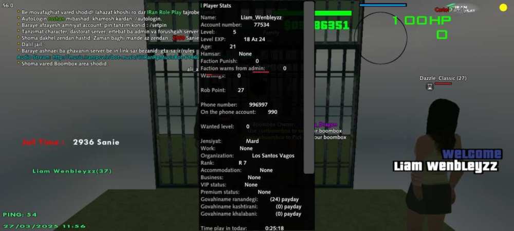 اطلاعات اکانت شما (Level، رنک و فکشن فعلی شما در سرور): lvl 5 , Vagos R7