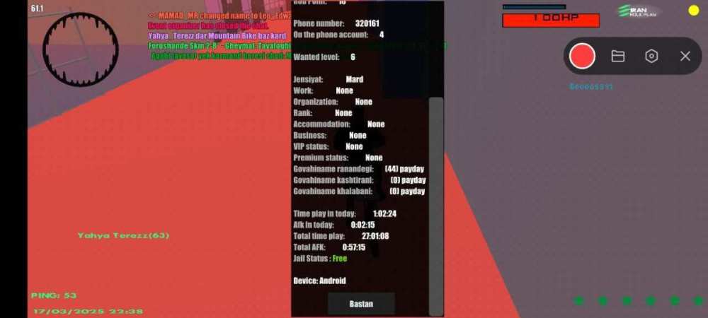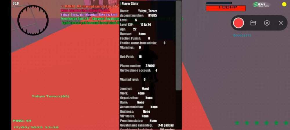 اطلاعات اکانت شما (Level، رنک و فکشن فعلی شما در سرور):