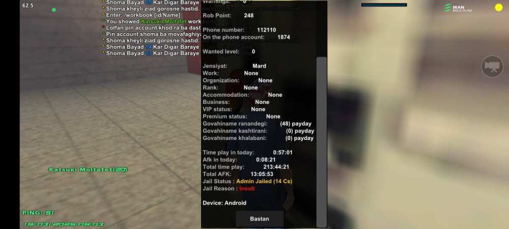 Winston_Moltafet پاسخی برای Vip_Amir ارسال کرد در موضوع : درخواست عضویت در سازمان های جنایی (Gang)