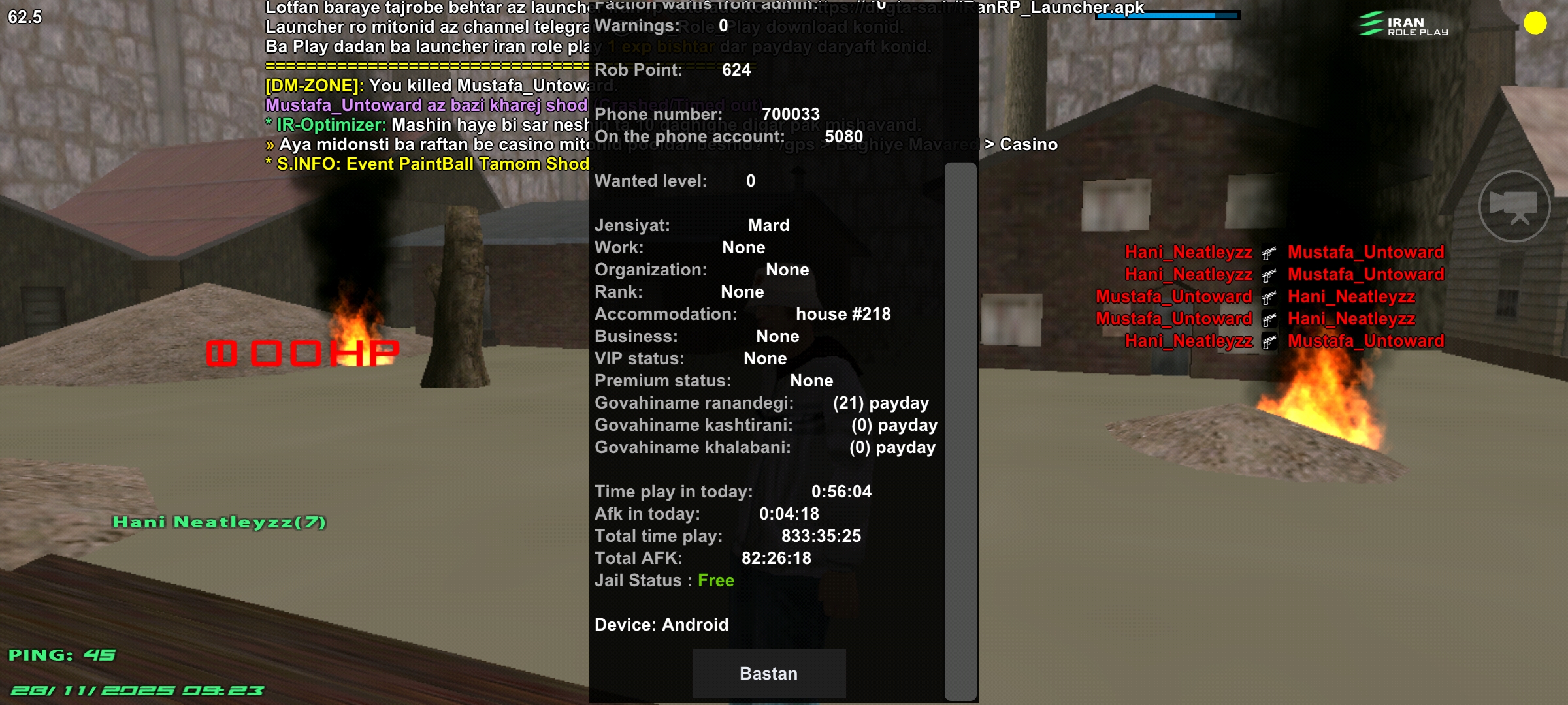 Jojo_Outsidazz ارسال شده در November 28, 2025 at 10:10 #145471 ارسال شده در November 28, 2025 at 10:10 (ویرایش شده) اینقدر سطح هستی پلیر ۱۴۰۴ که نمیدونی این سرور همه بازیکن ها لیز هستند خواهشن شکایت بی مورد نزن اگر چیت بود آخر ریک الان با ۴ تا تیر بدون میس میزدت ویرایش شده در November 28, 2025 at 10:11 توسط Dominic_Outsidazz نقل قول چندگانه نقل قول @ اشتراک گذاری