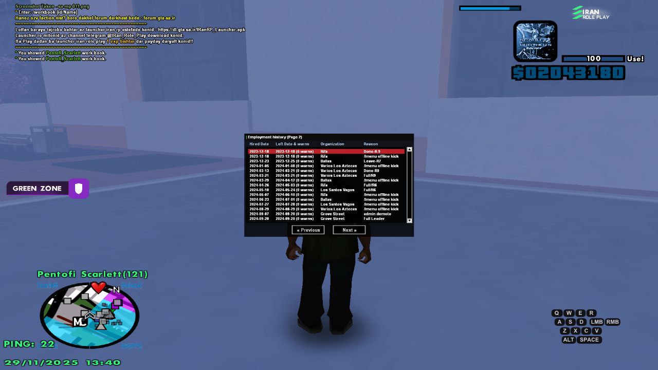Mohammad_Outsidazz ارسال شده در November 30, 2025 at 15:33 #146057 ارسال شده در November 30, 2025 at 15:33 در ۱۴۰۲/۸/۷ در 00:57، Vip_Amir گفته است: درخواست عضویت در گنگ Ballas ❓راهنما : جهت درخواست عضویت در گنگ Ballas فرم زیر را پر کرده سپس در همین بخش ارسال نمایید. اطلاعات IC 1 - نام حساب کاربری شما :Mohammad_Outsidazz 2 - سطح حساب کاربری شما :30 ۳ - سن شخصیت حساب کاربری شما :45 4 - سوابق خود را در سازمان های جنایی شرح دهید : National Guard R 8 Los Santos Hospital R 6 National Public Radio R 6 Varios Los Aztecas leave Los Santos Police R 7 Nopo R 9 Federal Bureau of Investigation R Kick Naghz Ghavanin Grove Street / Demote Leader R7 Varios Los Aztecas / Full R 7 توجه : عکس از wbook/ و stats/ حساب کاربری خود را حتما در پیام ارسال فرم بارگذاری کنید. اطلاعات OOC 1 - آیدی تلگرام :YeAdamAfsorde@ 2 - آیدی دیسکورد :mamadstorm23 3 - مقدار تایم پلی روزانه :+10 4 - در چه حد از رول پلی آگاهی دارید و به قوانین آن مسلط هستید ؟فول 5 - در چه حد با نحوه کارکرد سایت انجمن آشنایی دارید ؟فول 🔸در صورتی که رهبر مربوطه شما را انتخاب کند، با شما در قسمت پیام های شخصی انجمن در ارتباط خواهد بود🔸 نقل قول چندگانه نقل قول @ اشتراک گذاری