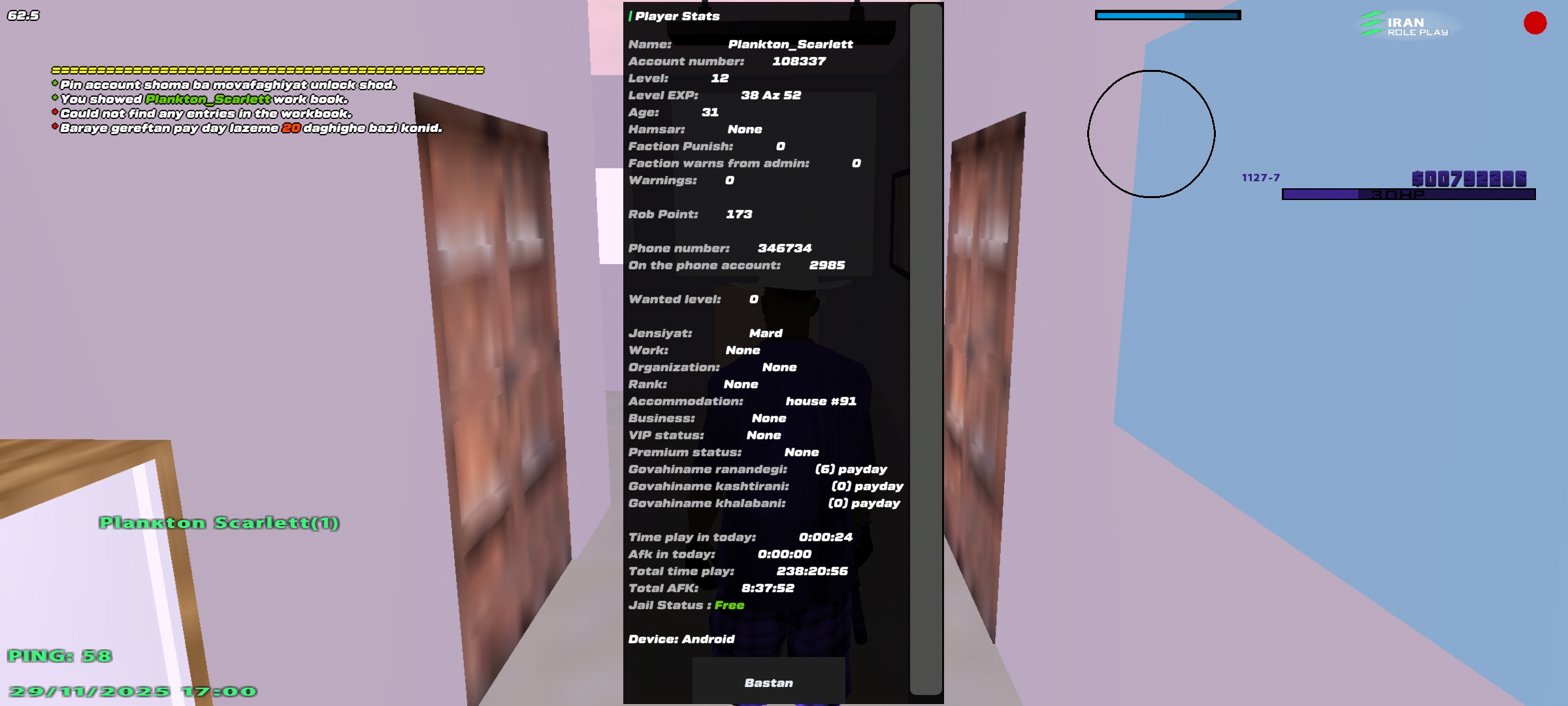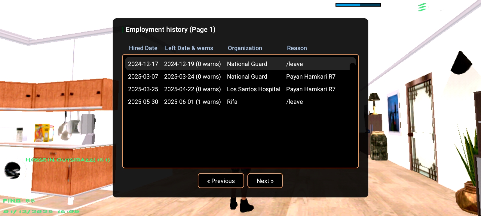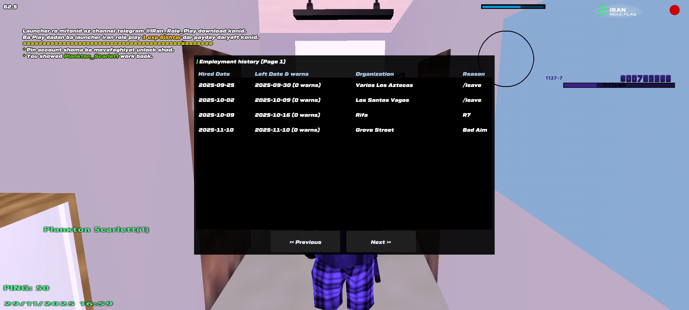 YASIN SSP ارسال شده در November 30, 2025 at 08:14 #145981 ارسال شده در November 30, 2025 at 08:14 نام کاربری شما:Yasin_Warden 2 - سطح حساب کاربری شما :10 ۳ - سن شخصیت حساب کاربری شما :21 4 - سوابق خود را در سازمان های جنایی شرح دهید :سابقه ندارم توجه : عکس از wbook/ و stats/ حساب کاربری خود را حتما در پیام ارسال فرم بارگذاری کنید. https://photos.app.goo.gl/xLSdRrBD2vZRDUyD8 اطلاعات OOC 1 - آیدی تلگرام : @VASTHGOY 2 - آیدی دیسکورد : 3 - مقدار تایم پلی روزانه :+3 4 - در چه حد از رول پلی آگاهی دارید و به قوانین آن مسلط هستید ؟پر هد کافی 5 - در چه حد با نحspacer.pngspacer.pngوه کارکرد سایت انجمن آشنایی دارید ?در هد کافی نقل قول چندگانه نقل قول @ اشتراک گذاری