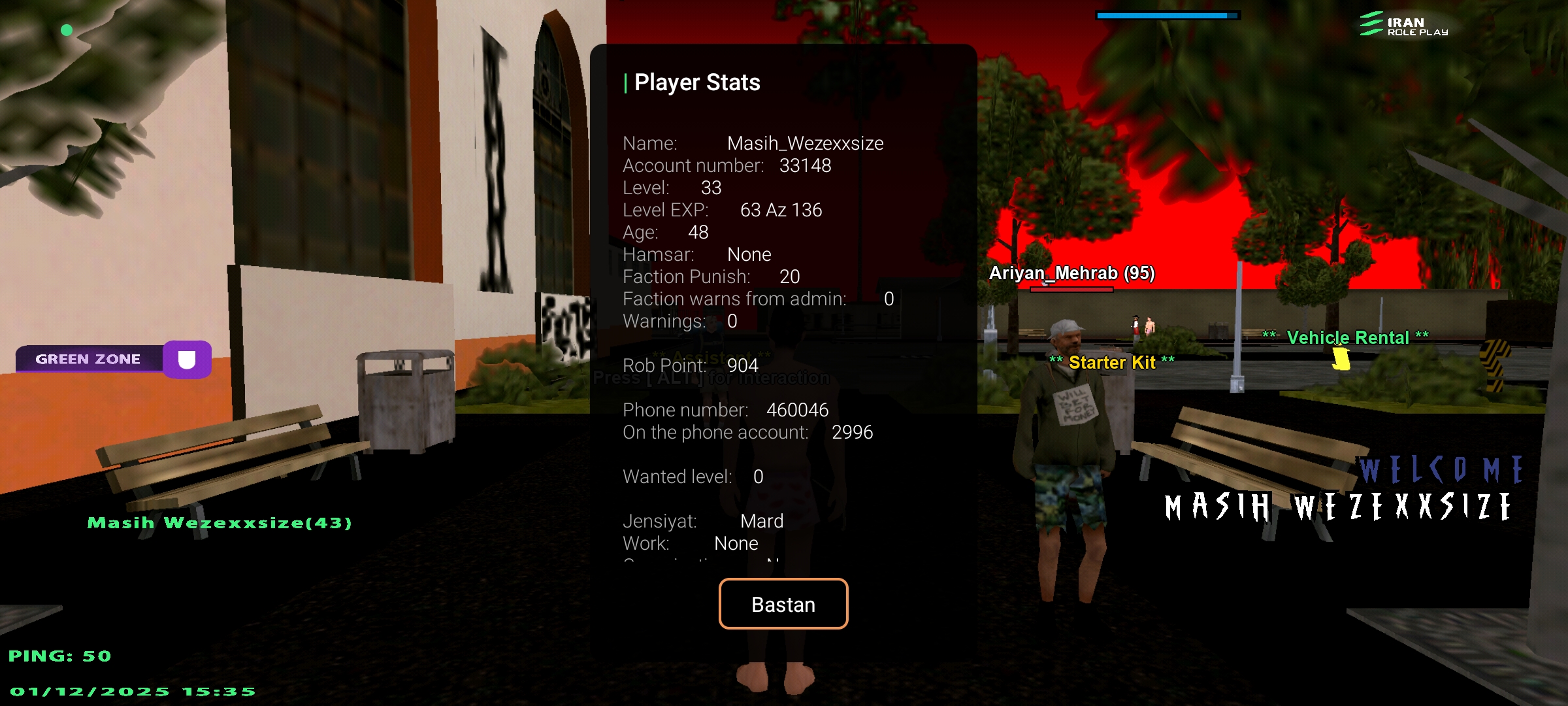 YASIN SSP ارسال شده در December 1, 2025 at 11:26 #146176 ارسال شده در December 1, 2025 at 11:26 نام کاربری شما:Yasin_Warden 2 - سطح حساب کاربری شما :10 ۳ - سن شخصیت حساب کاربری شما :21 4 - سوابق خود را در سازمان های جنایی شرح دهید :سابقه ندارم توجه : عکس از wbook/ و stats/ حساب کاربری خود را حتما در پیام ارسال فرم بارگذاری کنید. https://photos.app.goo.gl/xLSdRrBD2vZRDUyD8 اطلاعات OOC 1 - آیدی تلگرام : @VASTHGOY 2 - آیدی دیسکورد : 3 - مقدار تایم پلی روزانه :+3 4 - در چه حد از رول پلی آگاهی دارید و به قوانین آن مسلط هستید ؟پر هد کافی 5 - در چه حد با نحspacer.pngspacer.pngوه کارکرد سایت انجمن آشنایی دارید ?در هد کافی نقل قول چندگانه نقل قول @ اشتراک گذاری