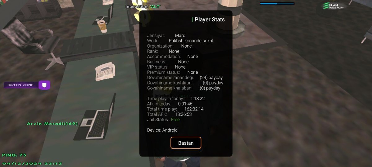 Matin_Khoda ارسال شده در December 10, 2024 at 09:53 #77740 ارسال شده در December 10, 2024 at 09:53 - نام حساب کاربری شما :Matin_Khoda 2 - سطح حساب کاربری شما :6 3- سن شخصیت حساب کاربری شما :23 4 - سوابق خود را در سازمان های جنایی شرح دهید:ندارم 1 - آیدی تلگرام :Matin_84_68@ 2 - آیدی دیسکورد :matin 3 - مقدار تایم پلی روزانه :+3 4 - در چه حد از رول پلی آگاهی دارید و به قوانین آن مسلط هستید ؟کامل 5 - در چه حد با نحوه کارکرد سایت انجمن آشنایی دارید ؟کامل شات از mm نقل قول چندگانه نقل قول @ اشتراک گذاری