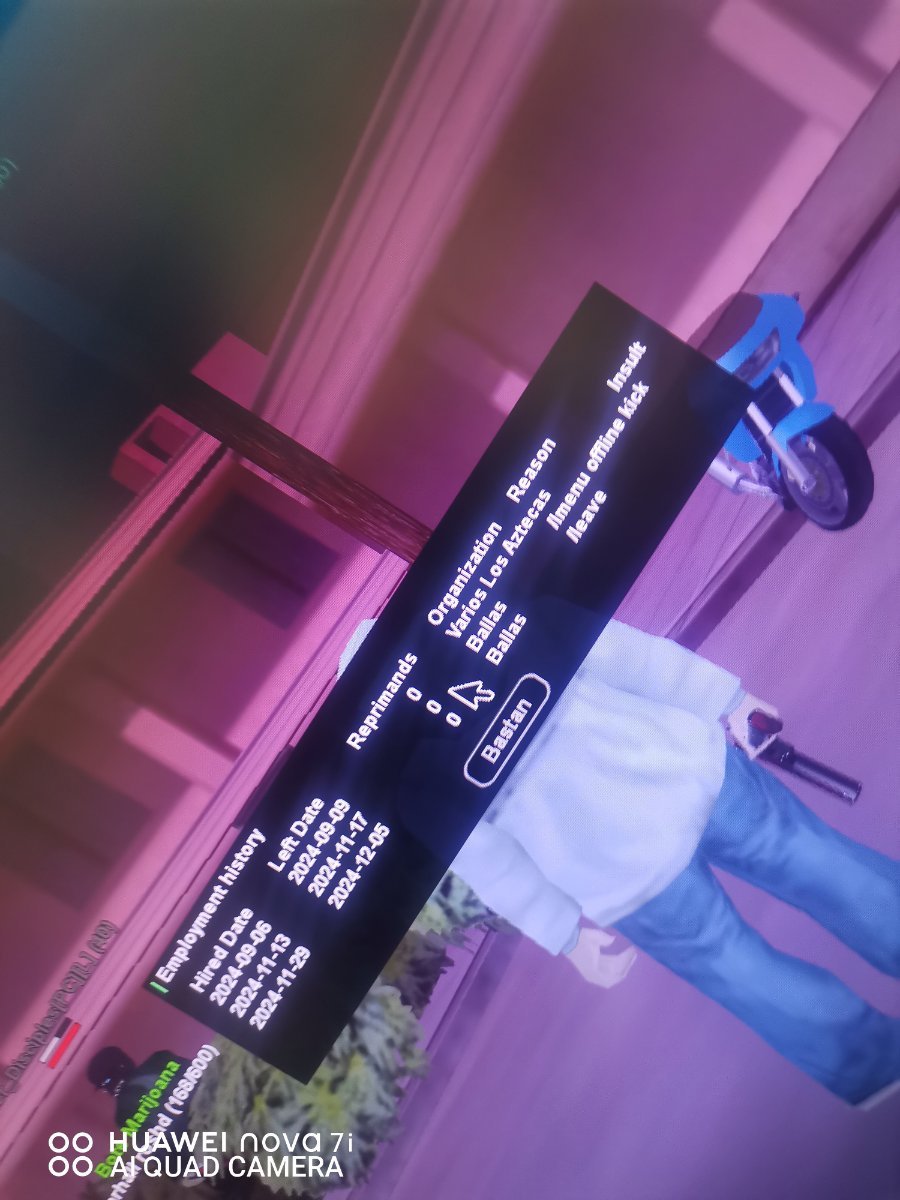 Trust_Delocruzz ارسال شده در December 9, 2024 at 10:25 #77481 ارسال شده در December 9, 2024 at 10:25 1-نام حساب کاربری شما : Makaan_Nasa 2 - سطح حساب کاربری شما : 24 ۳ - سن شخصیت حساب کاربری شما : 34 4 - سوابق خود را در سازمان های جنایی شرح دهید: Vagos Ballas Aztecas Rifa توجه : عکس از wbook/ و stats/ حساب کاربری خود را حتما در پیام ارسال فرم بارگذاری کنید. اطلاعات OOC 1 - آیدی تلگرام : @Makan_2020 2 - آیدی دیسکورد :ivar2024 3 - مقدار تایم پلی روزانه :8h 4 - در چه حد از رول پلی آگاهی دارید و به قوانین آن مسلط هستید ؟Full 5 - در چه حد با نحوه کارکرد سایت انجمن آشنایی دارید ؟ bale نقل قول چندگانه نقل قول @ اشتراک گذاری