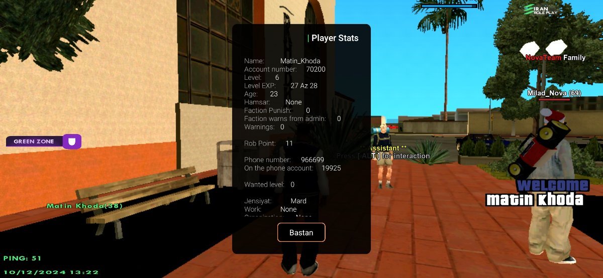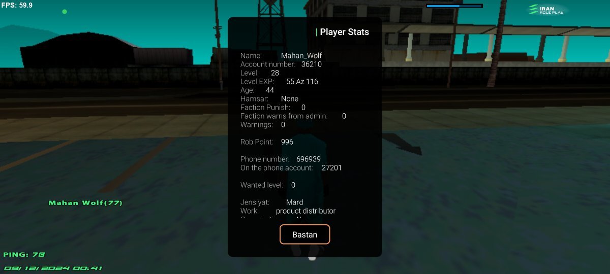 Mohsen-Moltafet ارسال شده در December 9, 2024 at 11:34 #77491 ارسال شده در December 9, 2024 at 11:34 در ۱۴۰۳/۱/۵ در 23:08، Amirreza_Aztecas گفته است: اطلاعات IC 1 - نام حساب کاربری شما :Amirreza_Fox 2 - سطح حساب کاربری شما :23 ۳ - سن شخصیت حساب کاربری شما :42 4 - سوابق خود را در سازمان های جنایی شرح دهید : Vagos,R1 Aztecas,R7 Rifa,R6 Grove,R6 Ballas,R6 توجه : عکس از wbook/ و stats/ حساب کاربری خود را حتما در پیام ارسال فرم بارگذاری کنید. اطلاعات OOC 1 - آیدی تلگرام :Amirreza_Fox 2 - آیدی دیسکورد :amirreza_gang 3 - مقدار تایم پلی روزانه :1+ 4 - در چه حد از رول پلی آگاهی دارید و به قوانین آن مسلط هستید ؟کامل 5 - در چه حد با نحوه کارکرد سایت انجمن آشنایی دارید ؟متوسط 🔸در صورتی که رهبر مربوطه شما را انتخاب کند، با شما در قسمت پیام های شخصی انجمن در ارتباط خواهد بود🔸 در ۱۴۰۲/۸/۷ در 01:02، Vip_Amir گفته است: درخواست عضویت در گنگ Varrios Los Aztecas ❓راهنما : جهت درخواست عضویت در گنگ Varrios Los Aztecas فرم زیر را پر کرده سپس در همین بخش ارسال نمایید. اطلاعات IC 1 - نام حساب کاربری شما :MAtin_Genesis 2 - سطح حساب کاربری شما :6 ۳ - سن شخصیت حساب کاربری شما :15 4 - سوابق خود را در سازمان های جنایی شرح دهید :0 توجه : عکس از wbook/ و stats/ حساب کاربری خود را حتما در پیام ارسال فرم بارگذاری کنید.adi tell mifrstam اطلاعات OOC 1 - آیدی تلگرام :Matin_Genesis 2 - آیدی دیسکورد : 3 - مقدار تایم پلی روزانه :10 4 - در چه حد از رول پلی آگاهی دارید و به قوانین آن مسلط هستید ؟متوسط 5 - در چه حد با نحوه کارکرد سایت انجمن آشنایی دارید ؟متوسط 🔸در صورتی که رهبر مربوطه شما را انتخاب کند، با شما در قسمت پیام های شخصی انجمن در ارتباط خواهد بود🔸 نقل قول چندگانه نقل قول @ اشتراک گذاری