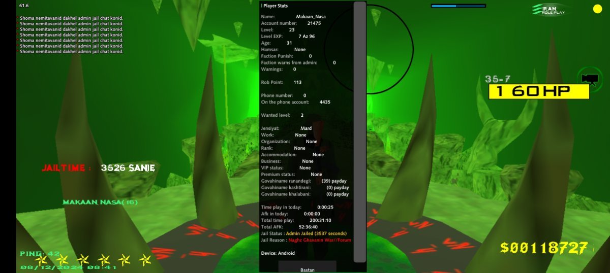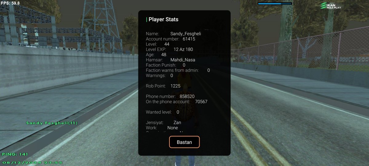 Sina_Scarlett. ارسال شده در December 10, 2024 at 07:42 #77731 ارسال شده در December 10, 2024 at 07:42 نام حساب کاربری شما : Ace_Hermanos 2 - سطح حساب کاربری شما : 24 ۳ - سن شخصیت حساب کاربری شما : 31 4 - سوابق خود را در سازمان های جنایی شرح دهید : Aztex full r7 Grove kick Ballas kick سابقه تو ریفا بالاس هم فول زیاد داشتم ولی wbookجدید گرفتمه توجه : عکس از wbook/ و stats/ حساب کاربری خود را حتما در پیام ارسال فرم بارگذاری کنید. اطلاعات OOC 1 - آیدی تلگرام :Xmun7 2 - آیدی دیسکورد : ندارم 3 - مقدار تایم پلی روزانه : 3+ 4 - در چه حد از رول پلی آگاهی دارید و به قوانین آن مسلط هستید ؟ کامل 5 - در چه حد با نحوه کارکرد سایت انجمن آشنایی دارید؟ کامل نقل قول چندگانه نقل قول @ اشتراک گذاری