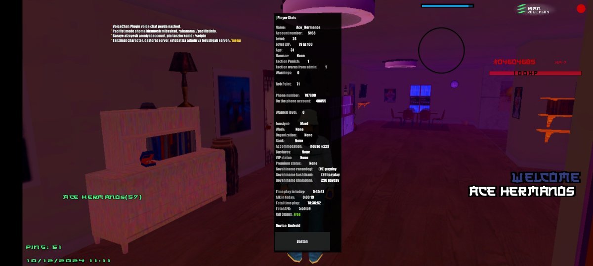 Penros_Outsidazz2 ارسال شده در December 9, 2024 at 18:50 #77671 ارسال شده در December 9, 2024 at 18:50 نام حساب کاربری شما : Arya_Ranger 2 - سطح حساب کاربری شما :24 ۳ - سن شخصیت حساب کاربری شما :27 4 - سوابق خود را در سازمان های جنایی شرح دهید : GROV R7 BALAS R7 VAGOS R7 توجه : عکس از wbook/ و stats/ حساب کاربری خود را حتما در پیام ارسال فرم بارگذاری کنید. اطلاعات OOC 1 - آیدی تلگرام :@Arya_Ranger 2 - آیدی دیسکورد :. 3 - مقدار تایم پلی روزانه :+3 4 - در چه حد از رول پلی آگاهی دارید و به قوانین آن مسلط هستید ؟کامل 5 - در چه حد با نحوه کارکرد سایت انجمن آشنایی دارید ؟.full نقل قول چندگانه نقل قول @ اشتراک گذاری