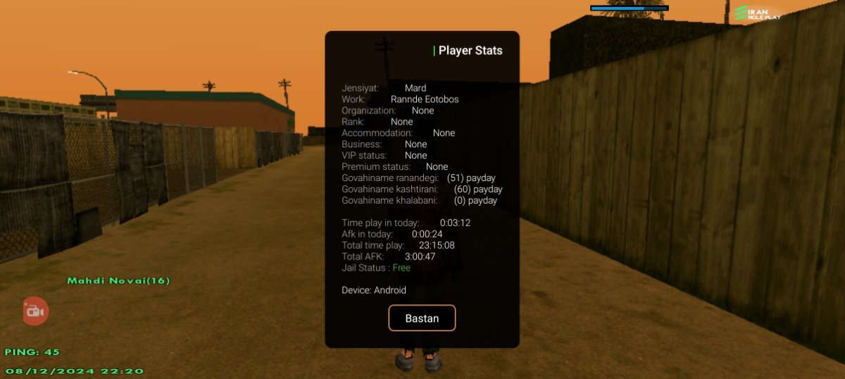 Amir_Blockboyzz ارسال شده در December 8, 2024 at 18:41 #77376 ارسال شده در December 8, 2024 at 18:41 اطلاعات IC 1 - نام حساب کاربری شما : Amir_Vengeance 2 - سطح حساب کاربری شما : 22 ۳ - سن شخصیت حساب کاربری شما : 52 4 - سوابق خود را در سازمان های جنایی شرح دهید : ندارم توجه : عکس از wbook/ و stats/ حساب کاربری خود را حتما در پیام ارسال فرم بارگذاری کنید. اطلاعات OOC 1 - آیدی تلگرام : @P0220P 2 - آیدی دیسکورد : parsa_fada 3 - مقدار تایم پلی روزانه : 4+ 4 - در چه حد از رول پلی آگاهی دارید و به قوانین آن مسلط هستید ؟ کامل 5 - در چه حد با نحوه کارکرد سایت انجمن آشنایی دارید ؟ کامل نقل قول چندگانه نقل قول @ اشتراک گذاری 💀Im god💀
